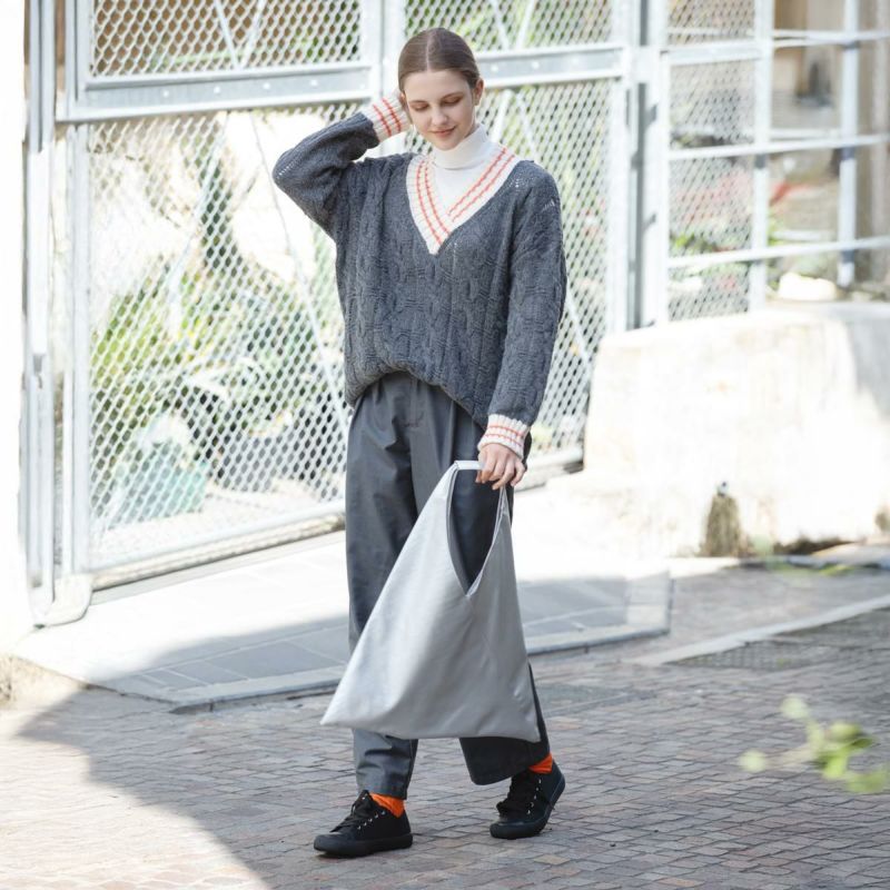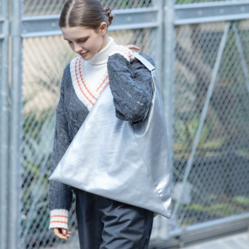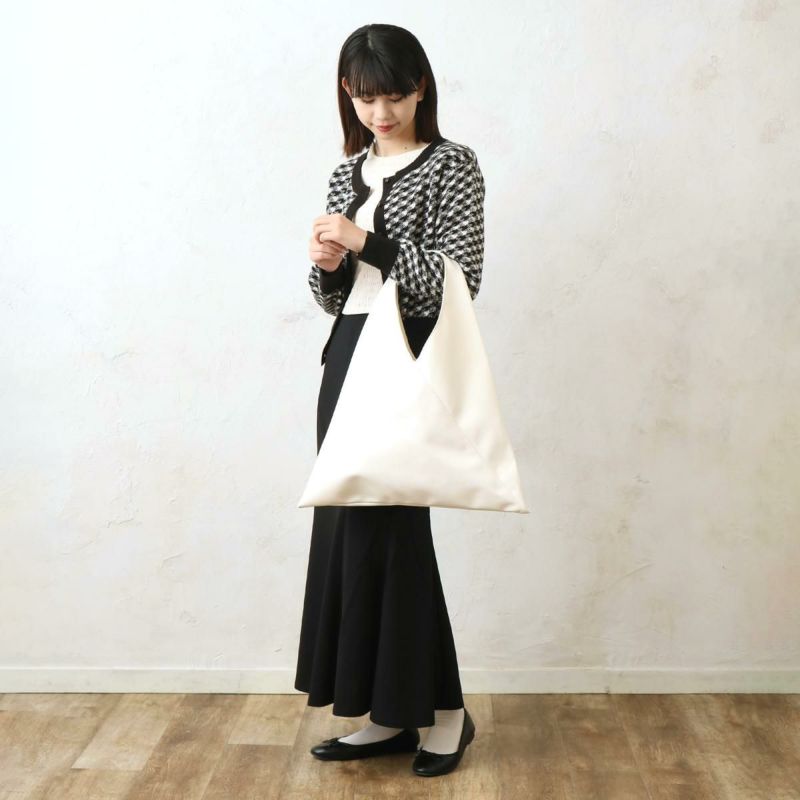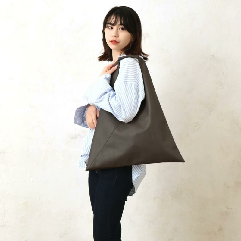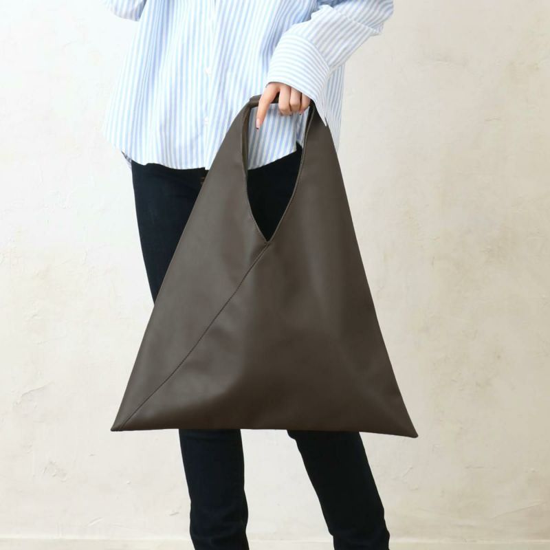 サンカクのスタイリッシュな合皮のトートバッグ。幅広いスタイリングに合うシンプルなトートなので、通勤・通学バッグとしてもおすすめです。 #合皮バッグ