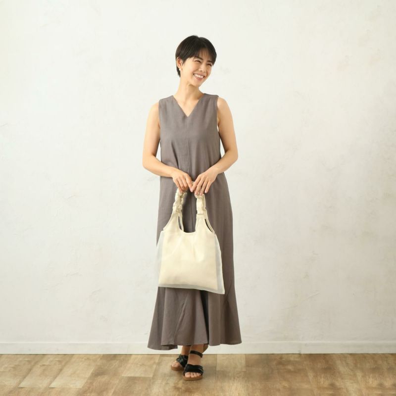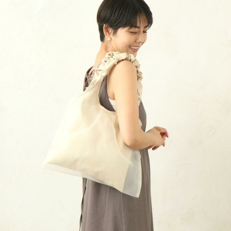 合皮とチュール生地のコンビ使いが印象的なチュールギャザートートのリニューアル版が登場!小さいながらも大小3つのポケット装備で使い勝手も◎春夏コーデのアクセントになるアイコックな雰囲気で、パーティーやセレモニーにもおすすめです! #250609
