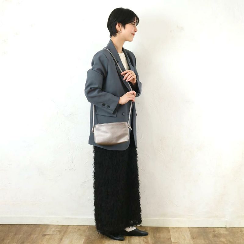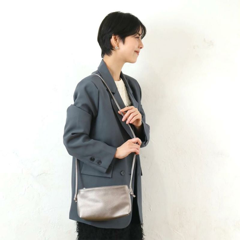 軽くて柔らかい合皮を使用しているので体に添いやすく馴染みます。スマホや小さめ財布などの必要最低限な荷物の収納にぴ ったりなサイズ感です!コーディネートを選ばないシンプル なデザインはどんな場面でも使いやすい!