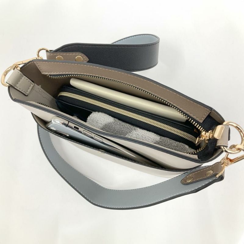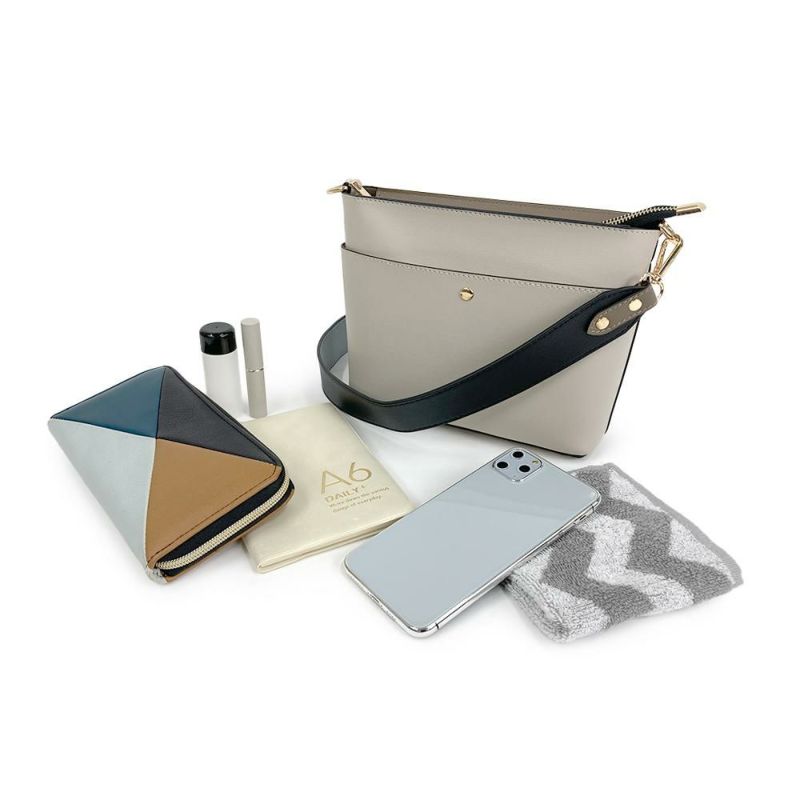 色を楽しむコンセプトの小振りなショルダーバッグです。両面使い出来るショルダーストラップ付きのWフェイス仕様で、小物が出し入れしやすい外ポケット付き。天ファスナー付きで安心して使える仕様です♪ #0127