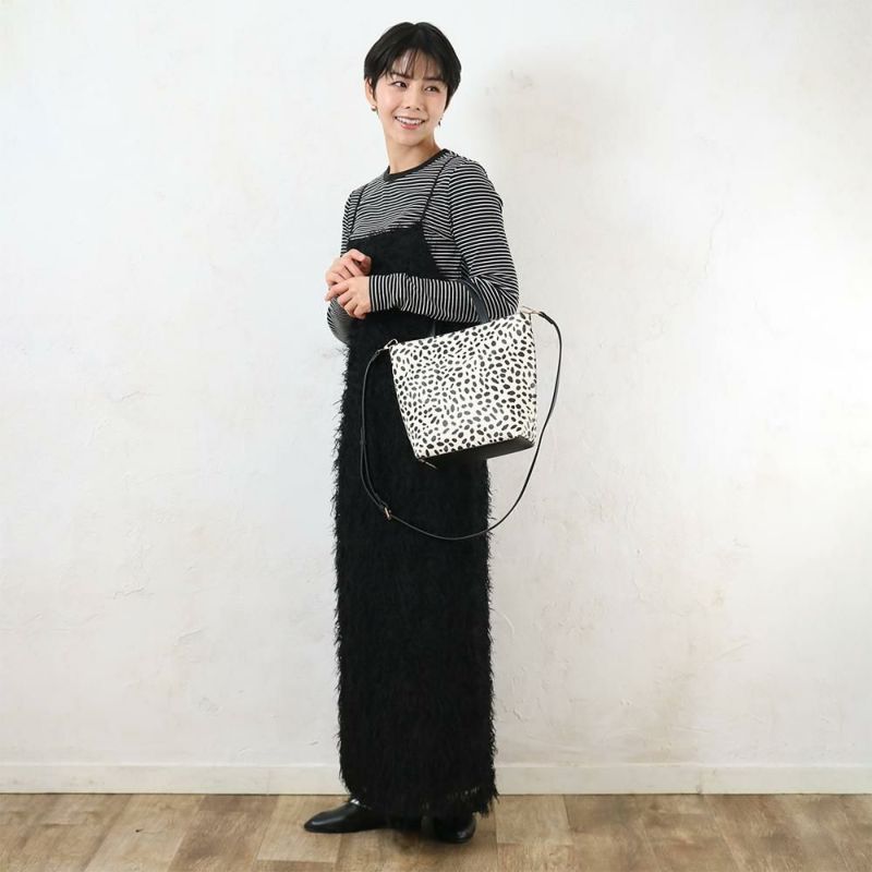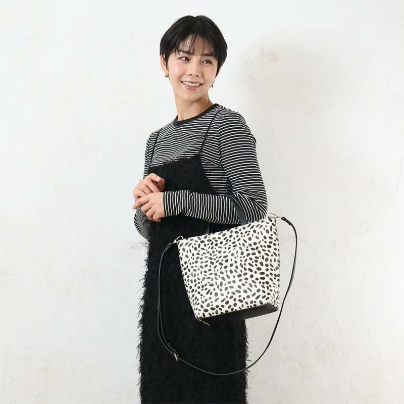 毛並み風のシボ感がある合皮にアニマルプリントを施したミドルサイズのトートバッグ。必需品をまるっと収納できる便利なサイズ感、軽量でシャキッと自立します。シンプルながら個性的なデザインで、コーデのアクセントになる存在感が魅力♪ #0507