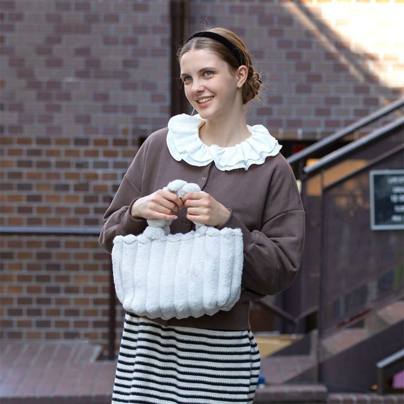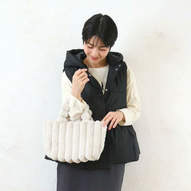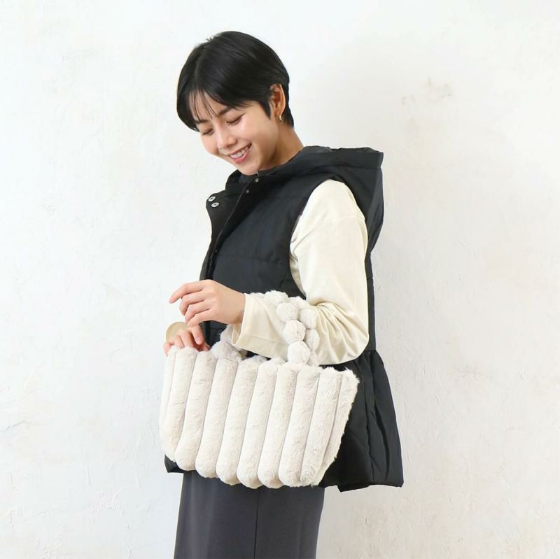 ボリュームがあり手触りが良いフェイクファーを使用した冬バッグです。縦のファーキルティングがポイントで持ち手のポコポコが見た目にも可愛いです。ちょっとしたお出かけやなどにちょうどいいサイズ感!