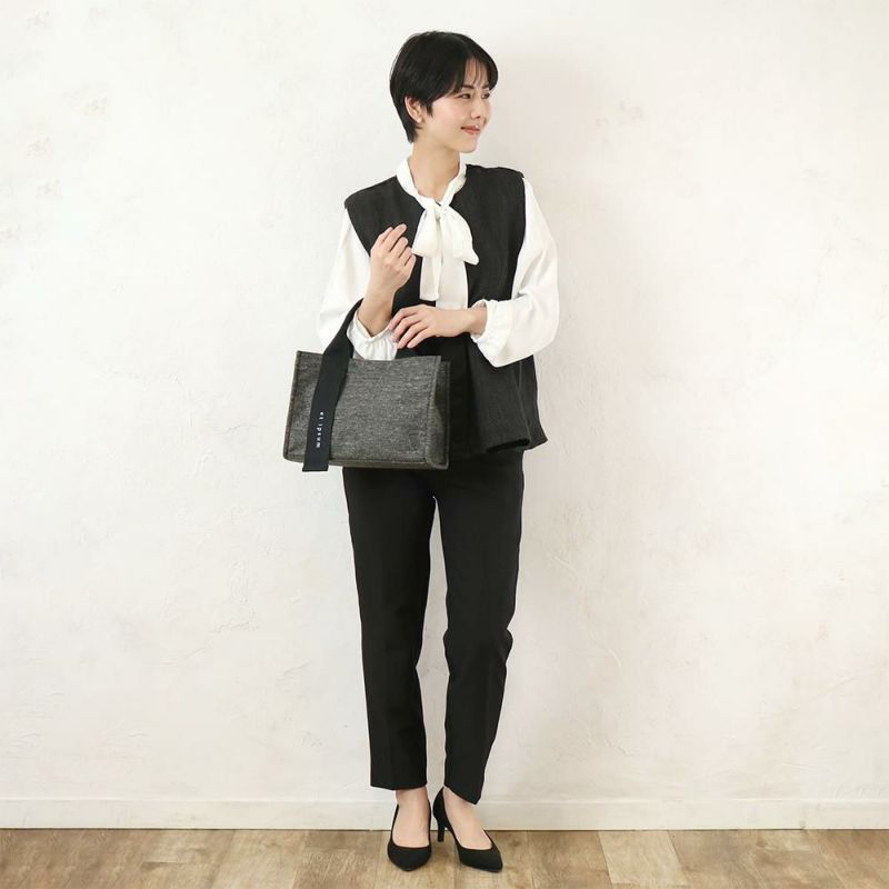 大小6個のポケット、ボトル収納に便利なホルダー付きで整頓上手なトートバッグ。必需品をまるっと収納できる便利なサイズ感、軽量でシャキッと自立します。コーデを引き立てるアシンメトリーなハンドルデザインがポイントです♪
