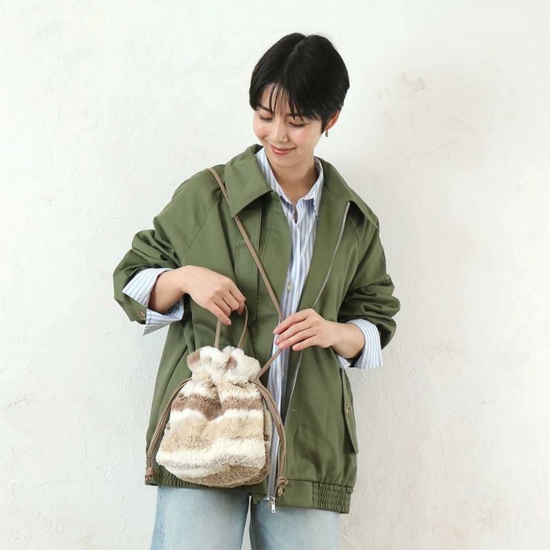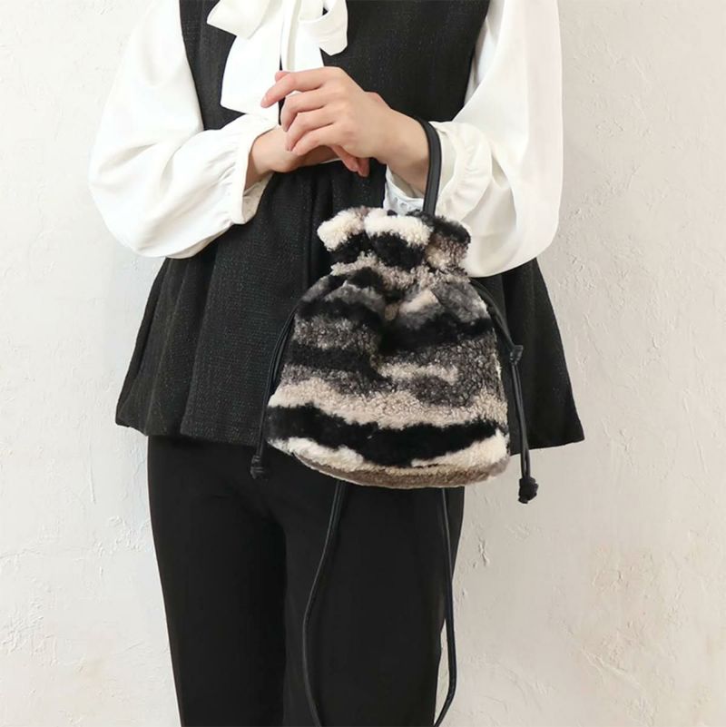 目新しい印象のファー&ボアのミックス生地を使用した2WAY仕様の巾着ショルダー。小振りながらもお出掛け必須アイテムはしっかり収納できる便利なサイズ感です。個性的なデザインで、秋冬コーデのアクセントにおすすめ♪
