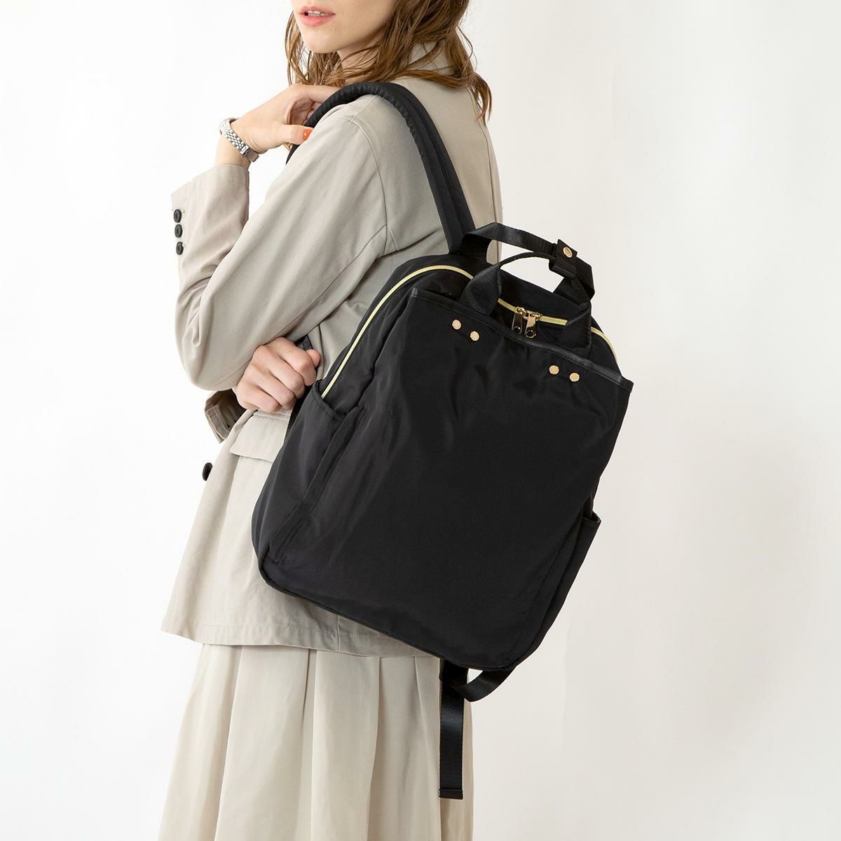 SNSでバズった多機能withableシリーズが帰ってきました!お客様の声を反映し、リニューアル365日持ちたくなるファッション性と機能性を備えつつ、サスティナブルにもこだわりました!中身を入れずとも自立するしっかりとしたつくりながら、軽量なのも嬉しいポイント♪開口部はダブルファスナー仕様で大きく開き、中身の出し入れがスムーズに!重量:約555g 容量:約15リットル サイズ:H380×W300×D130(mm)