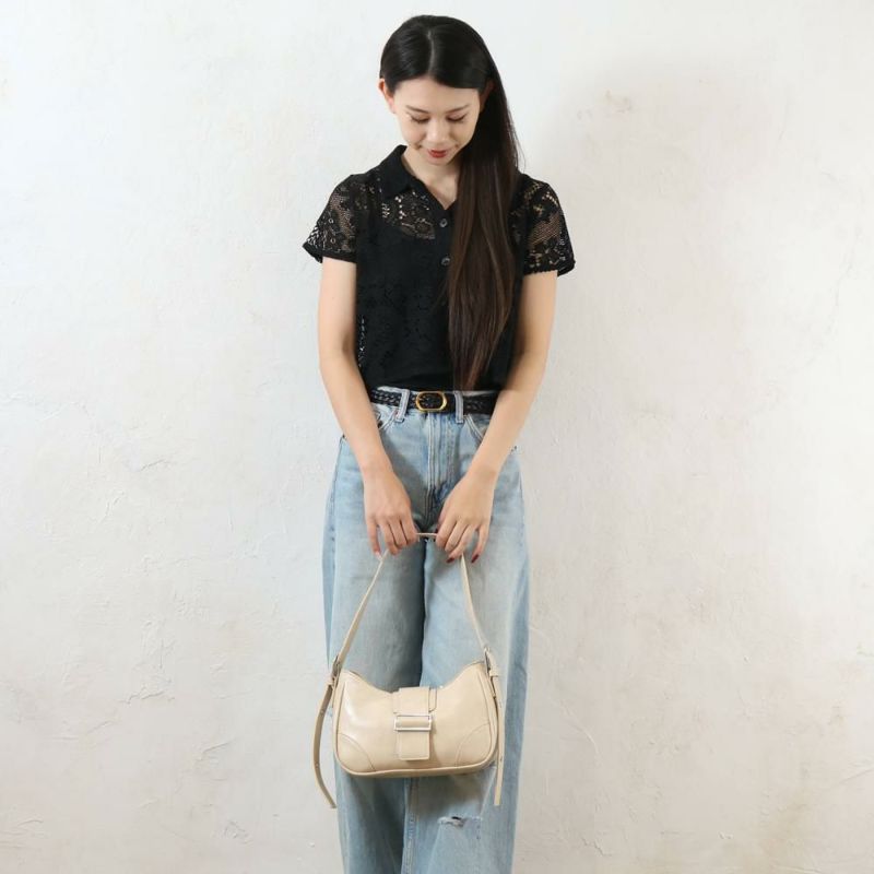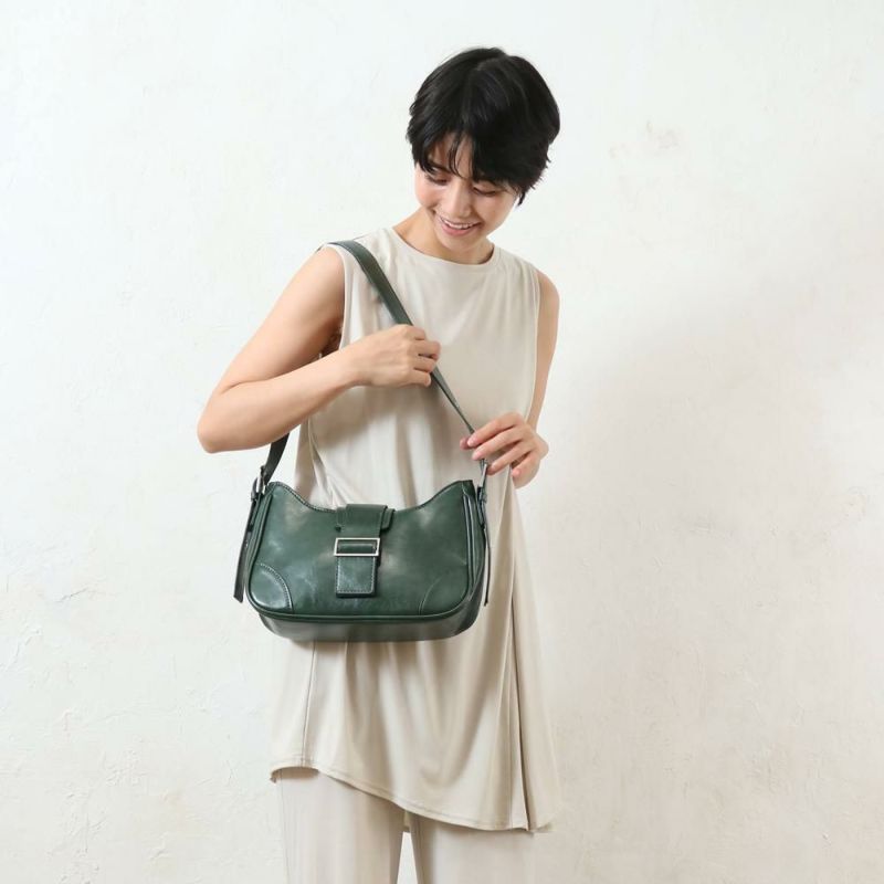 クールなバックルデザインとヴィンテージ感のある素材が、コーディネートを格上げするバッグです。シンプルながらも存在感があり、いつものスタイルにトレンド感をプラス◎長さ調節可能なショルダーは肩掛けと手持ちで使え、コンパクトな見た目以上の収納力も魅力です!