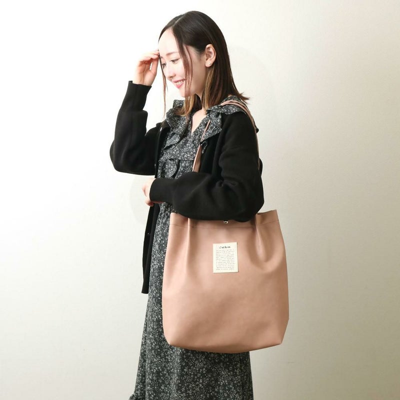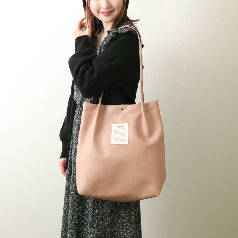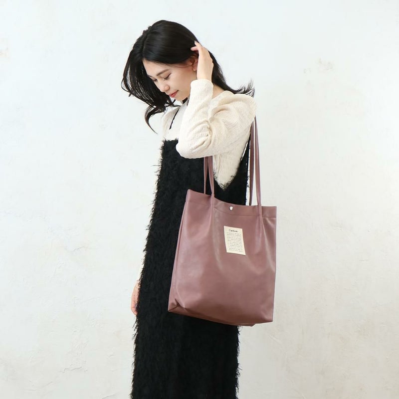 A4サイズが入る実用的なサイズ感に、肩掛けしやすい長めの持ち手がポイント。こなれ感を演出してくれる、デイリー使いに最適なバッグです。 #売れ筋10 #合皮バッグ #250722
