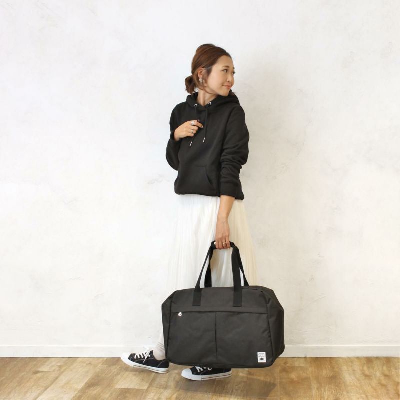 丈夫な杢調生地を使った大容量のボストンバッグ。機内持ち込みサイズで2~3泊の旅行にピッタリ!便利なキャリー差し込みポケット付き。 #0324