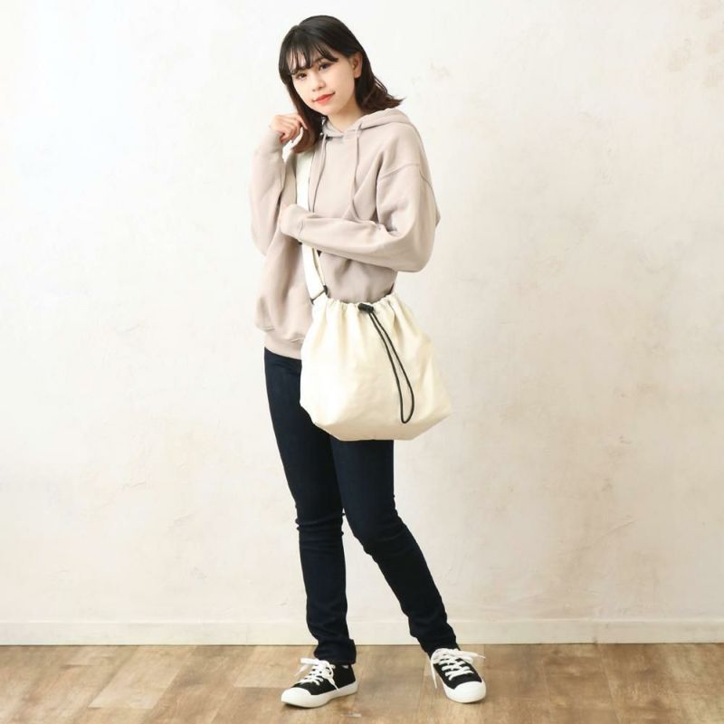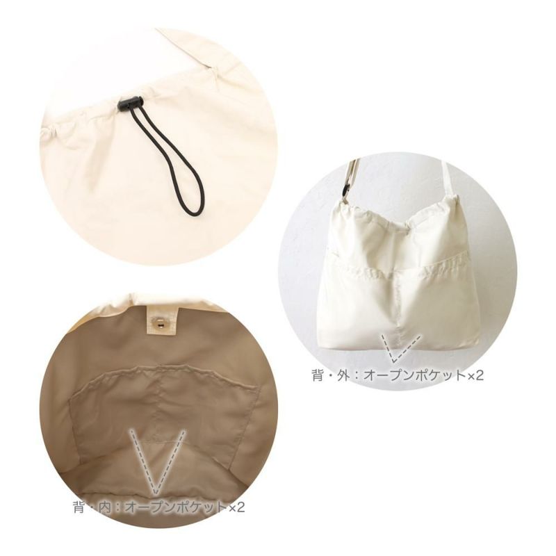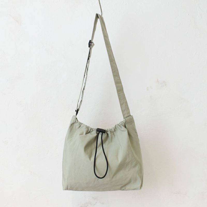 口を絞ってシルエットを変えられるドロストデザインがポイントのショルダーバッグ。バッグ本体は約185gと超軽量です!A4サイズが横向きに入るサイズ感で、1泊程度の旅行にも活躍する大容量バッグ。裏地にはリサイクル生地を使用し、環境にも優しく、太めのショルダー紐で肩の負担を軽減、体にも優しいバッグです。 #240729