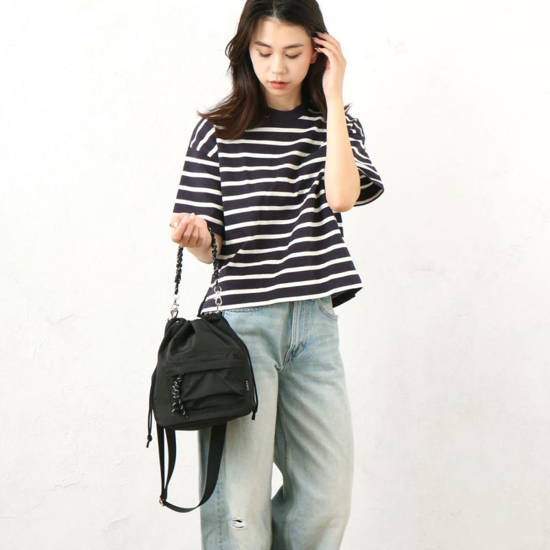 ハンドメイドのコード編みストラップが目を引く巾着ショルダーです。ハンドルやショルダーストラップは付け替えられる仕様でアレンジ可能。コーディネートのアクセントにおすすめのアイテムです。