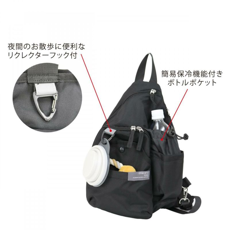 365日愛犬とのお散歩の時間を楽しく~をテーマに飼い主さんのお散歩時の負担を軽くする機能が盛り込まれたワンかるシリーズが登場!お散歩時に両手が使える便利なボディバッグタイプは普段使いや旅行などでもお使いにもおすすめです。