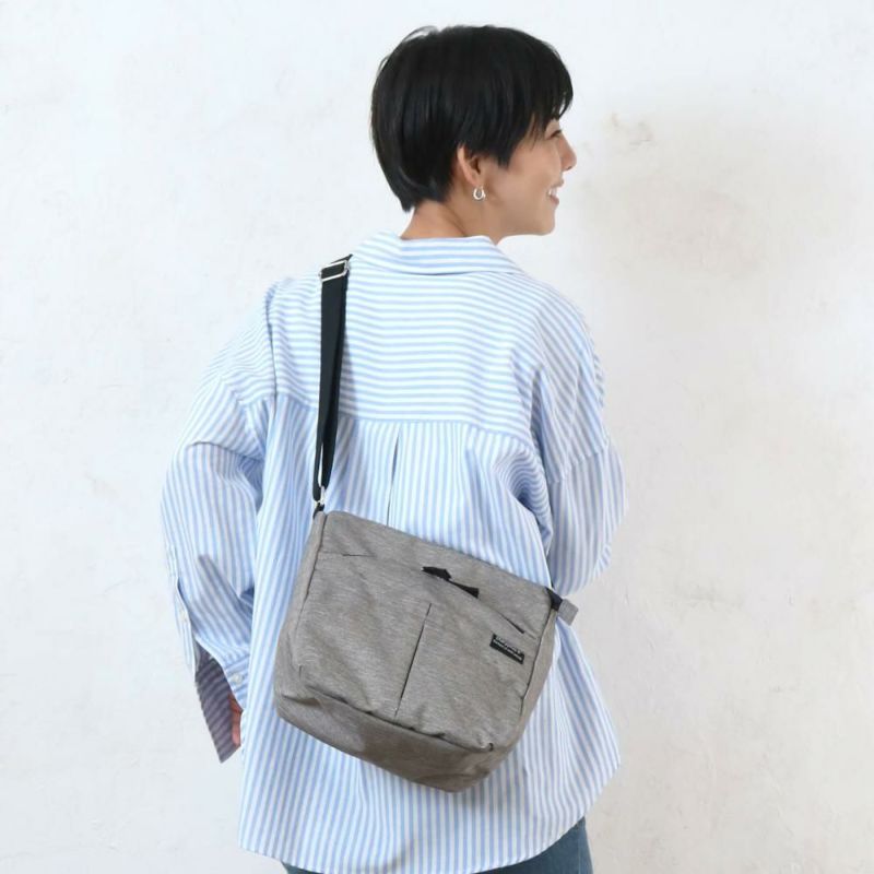 いいとこ取りのプラティプラスシリーズから日常使いに便利な本調素材が登場!ポケット充実、500mlボトルが立てて収納可能な総型ショルダー! #0324