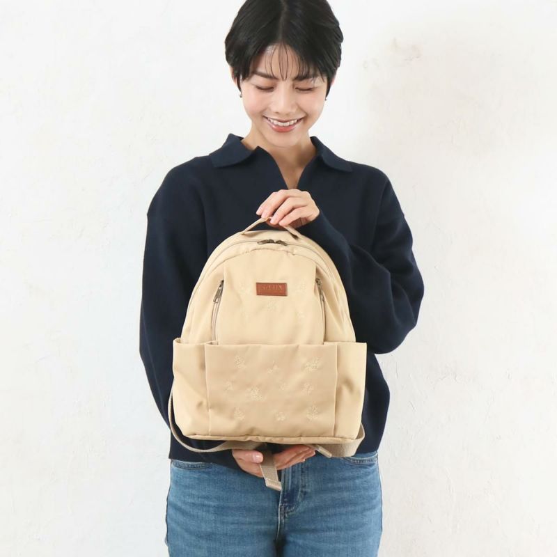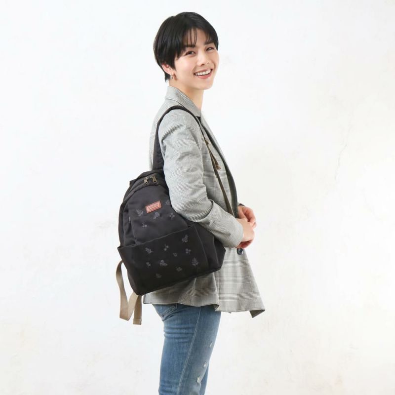 一番人気だった大人な雰囲気のフラワー刺繍がリニューアルし再登場!表生地にはっ水加工を施しているので水溶性の汚れがつきにくくお出かけや行楽のお供にもぴったり。ポケットが11個あり仕分けがしやすく収納力もばっちり。