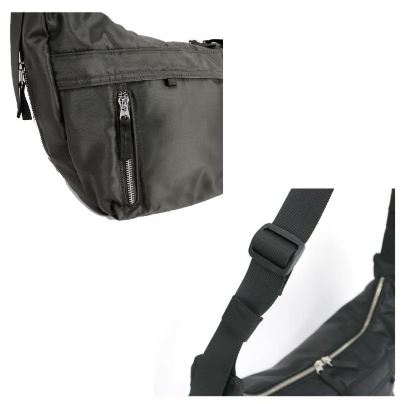 大きなダブルポケットが目を引くムーン型ショルダー。体に沿ったアーチ型、ショルダー部分はウレタン仕様で肩に優しい大きめショルダーです!