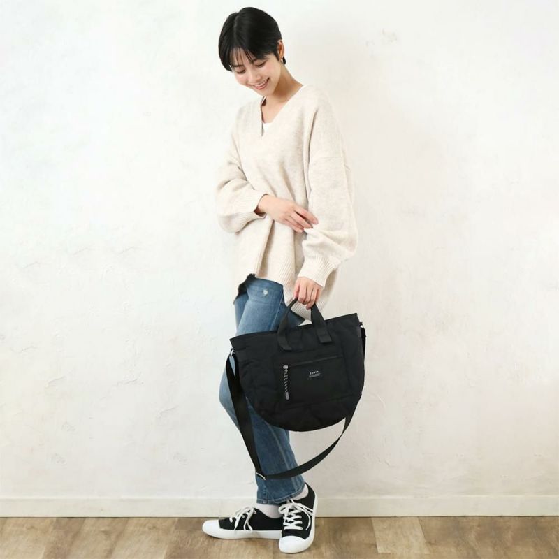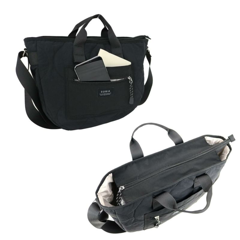 マット調リップストップ生地をベースにウェーブキルト加工を施した半円型が可愛いサークルトート。天面ファスナー仕様で軽量、ポケット充実の多機能トートです。