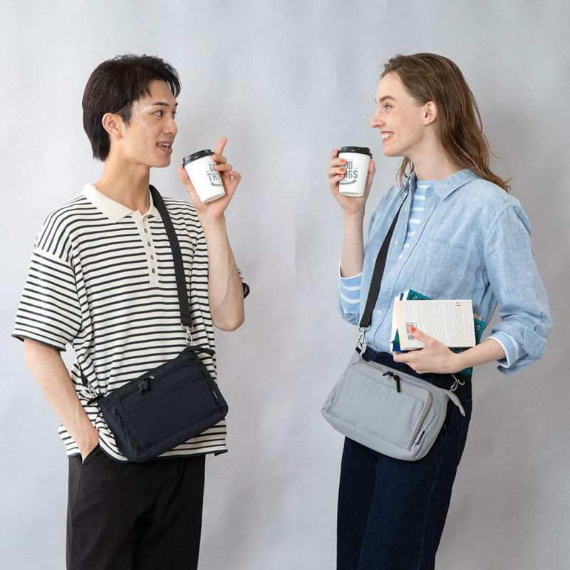 シンプルな見た目からは想像できない10ポケット搭載、お財布機能付きの多機能ショルダー。30mm幅ショルダーで肩の負担も軽減、デイリー使いからショルダー脱着式なのでバッグインバッグとしてもお使いいただけます。