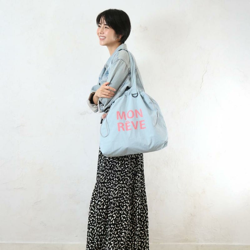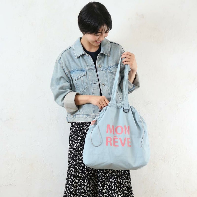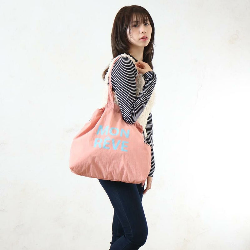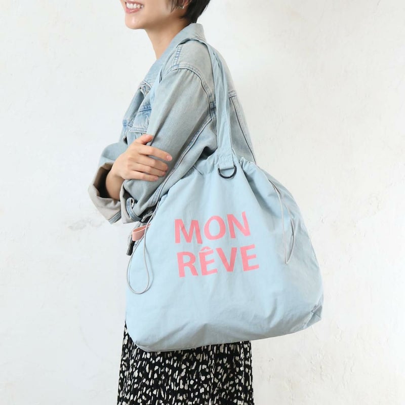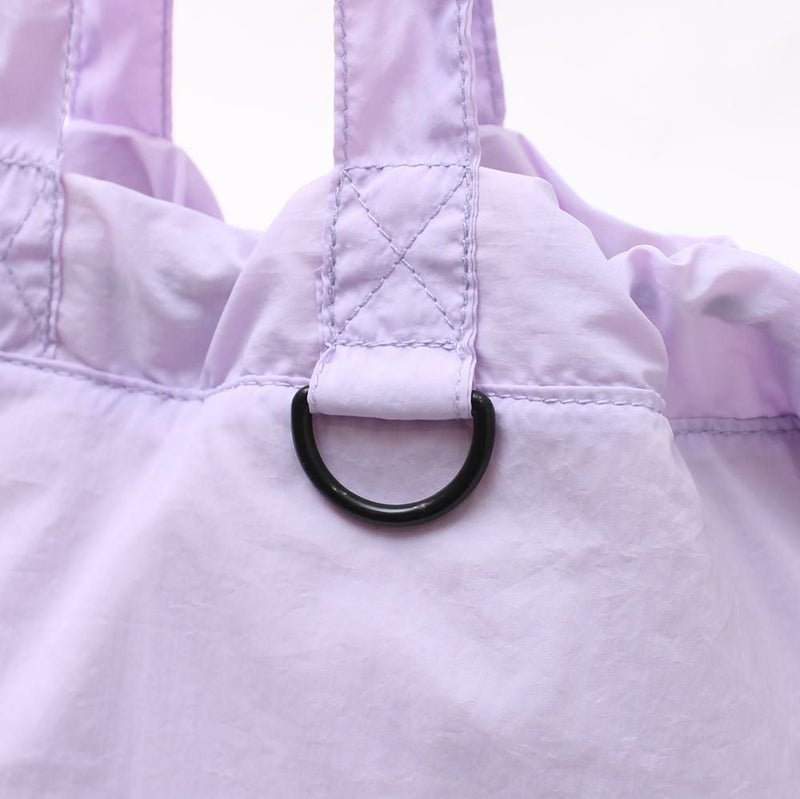 パステルカラーが可愛いカラーナイロンロゴトート。軽量なナイロン素材を使用した巾着型で、A4対応かつフック機能付きと機能性も優秀です。大きなロゴがカジュアルなアクセント。デイリーユースからレジャーまで、幅広く活躍する使い勝手の良いバッグです。