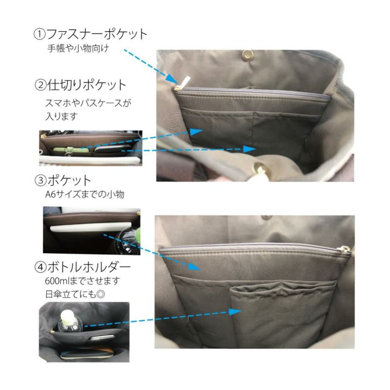 ポケットがたくさん付いた整理整頓しやすいトート。シンプルで落ち着きのある配色と合皮が、どんなファッションにも馴染みます。 #250825