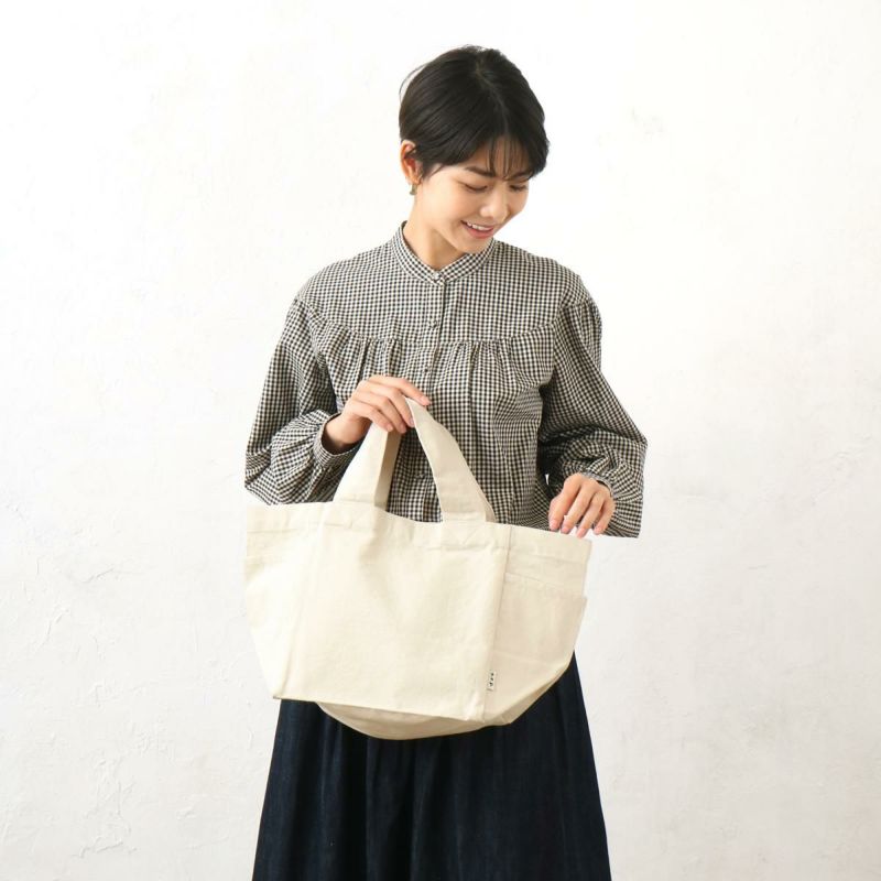 キュービック型のコロンとしたフォルムが可愛い、ミドルサイズのトートバッグです。リサイクル素材を使用しているので、環境にも優しいエコなアイテムです。持ち手の幅が広いので、負荷がかかりにくく手に優しい。