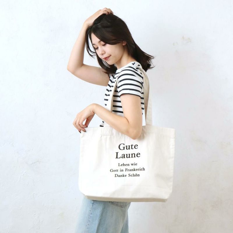 肌馴染みの良い柔らかなリサイクルコットンを使用したサスティナブルな大容量バッグは、幅広い場面でお使いいただけるシンプルデザイン。底板が入っているのも嬉しいポイント。