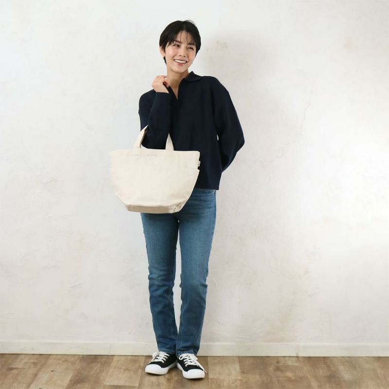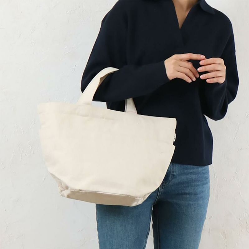 使い勝手の良い深めの大きな前ポケットがついたバケツ型トート。普段使いしやすいミドルサイズでデイリー使いにピッタリ!