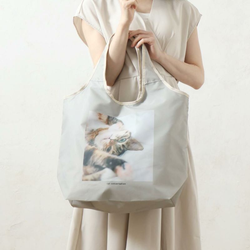 かわいい猫のフォトデザインが施された保冷保温エコバッグです。小さく畳めるので、持ち運びにも便利。毎日のお買い物をサポート #0217