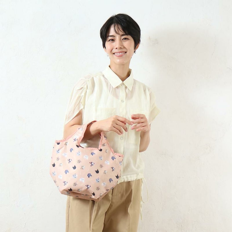 コンビニやちょっとしたお出かけやペットの散歩にも役立つサイズ感のエコバッグ。小さなサイズ感ながらも、コンビニの丸い容器や500mlペットボトルも入ります。付属のゴムで丸めて小さくすることができるので、使わないときはコンパクトにして携帯できます。