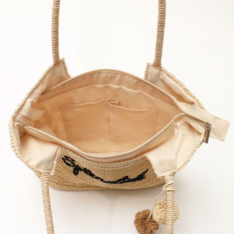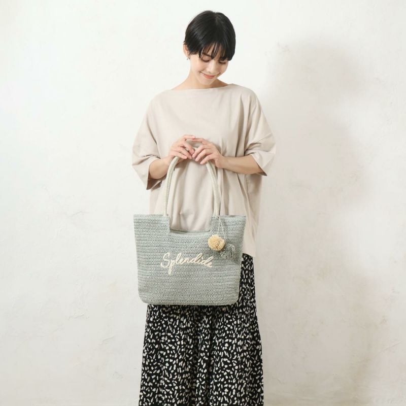 ロゴはサガラ刺繍で高見え。本体は軽くシンプルなのでスタイリングにも合わせやすい。ペーパーのポンポンは取り外しもできアクセントになり、いつものコーデを盛り上げます。ペーパー素材は軽さと柔らかさがポイント。マチ幅も広く、容量がたくさん入るのも嬉しいポイントです!