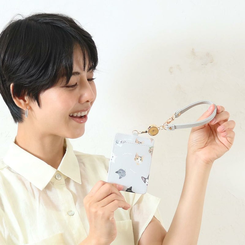 使いやすいリール仕様でクリア窓付ポケットとカードが1枚入るポケットがついてます。ストラップは外せるのでバッグの持ち手など好きな場所に取り付けられます。ネコ好きな方へのプレゼントにもおすすめです。