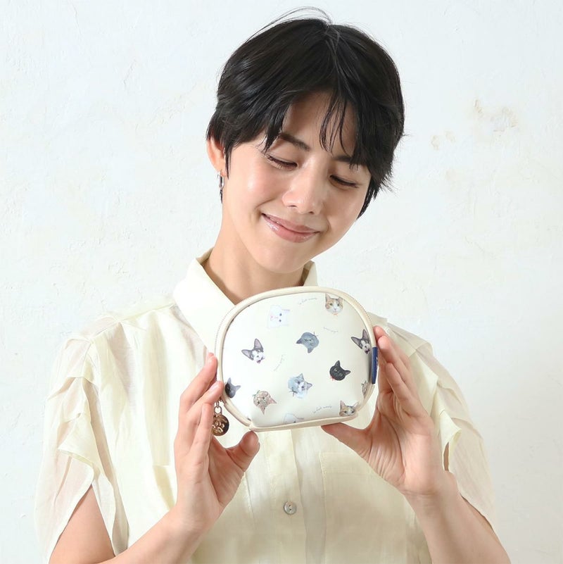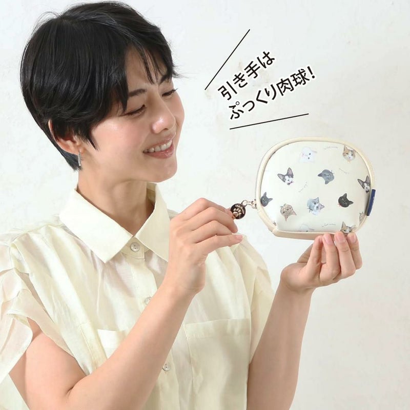 貝のようなころんとしたシルエットに大きく開く口で中身が取り出しやすいです。内ポケットもオープンポケットが一個つき。ネコ好きな方へのプレゼントにもおすすめです。