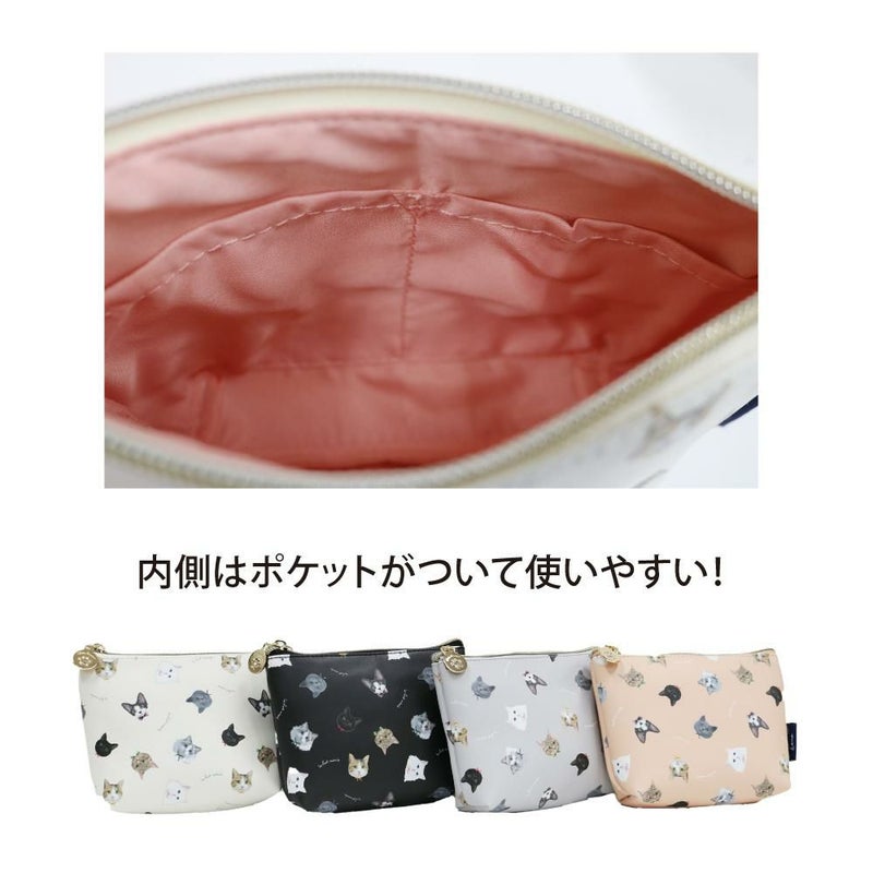 小物やコスメ、なんでも入れやすい舟形ポーチです。内側にオープンポケットが二つあり細々とした物もきれいに整理して持ち運べます。ネコ好きな方へのプレゼントにもおすすめです。