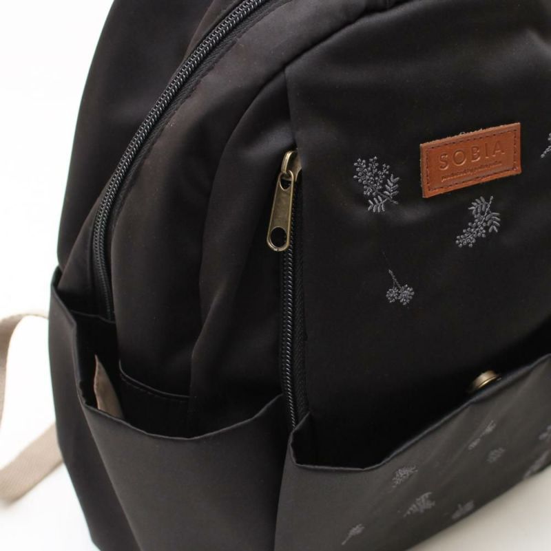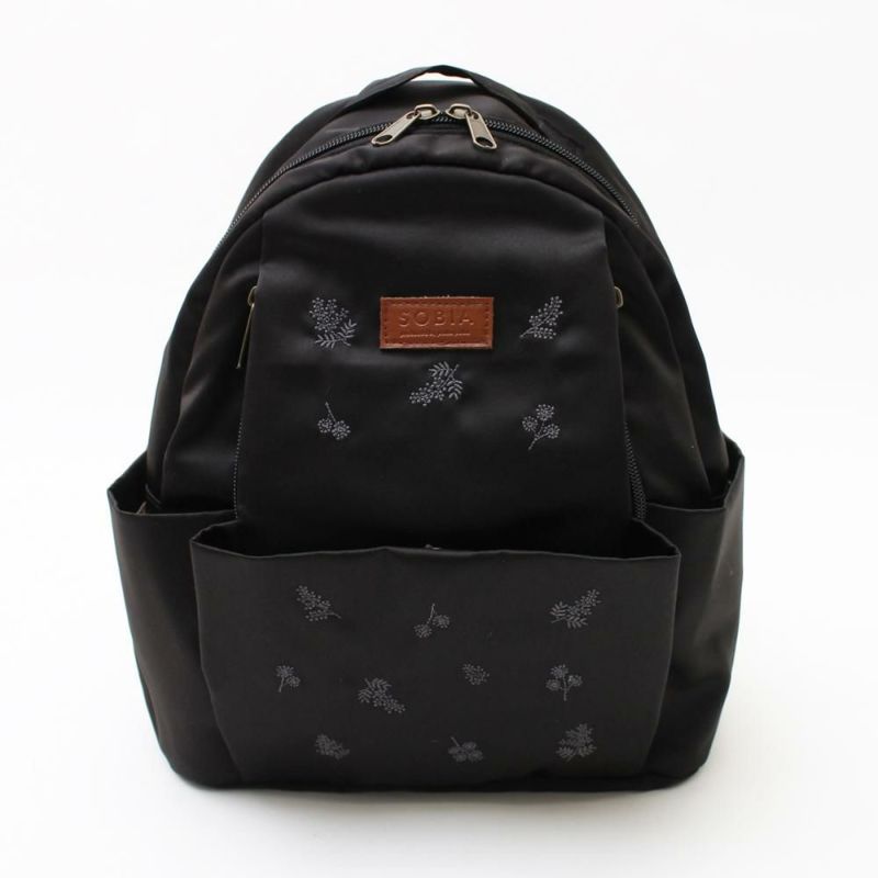 一番人気だった大人な雰囲気のフラワー刺繍がリニューアルし再登場!表生地にはっ水加工を施しているので水溶性の汚れがつきにくくお出かけや行楽のお供にもぴったり。ポケットが11個あり仕分けがしやすく収納力もばっちり。