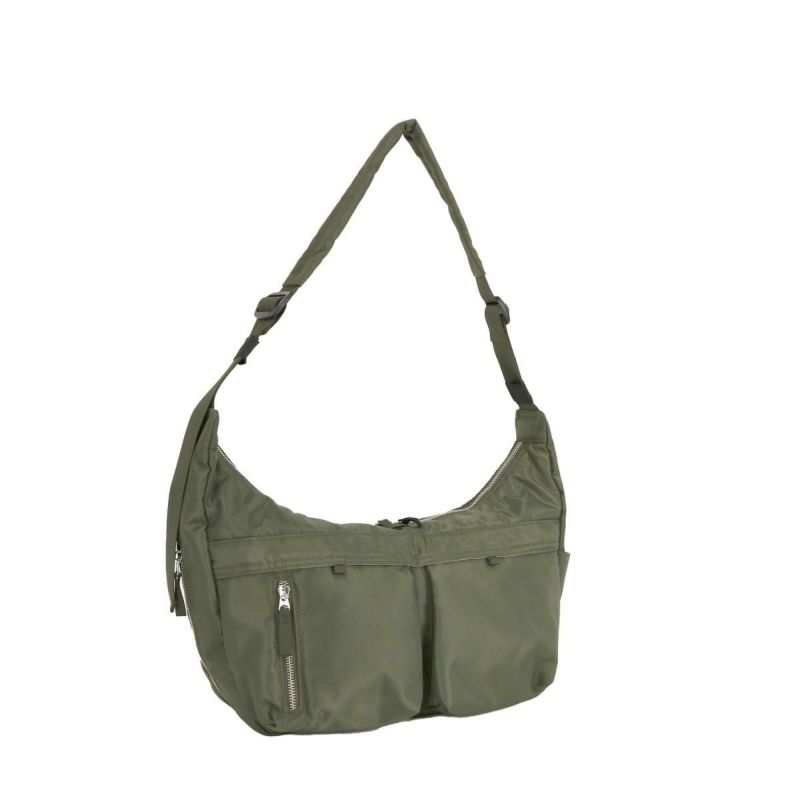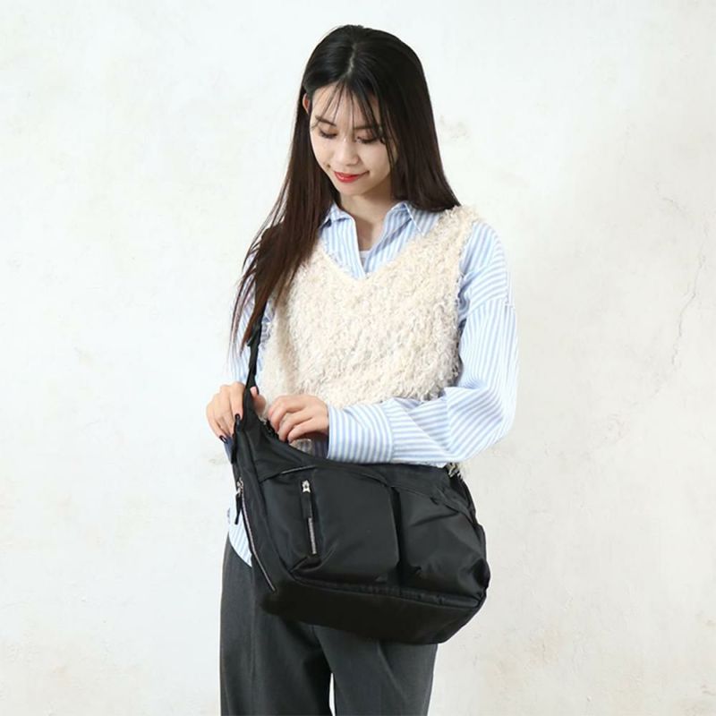 大きなダブルポケットが目を引くムーン型ショルダー。体に沿ったアーチ型、ショルダー部分はウレタン仕様で肩に優しい大きめショルダーです!