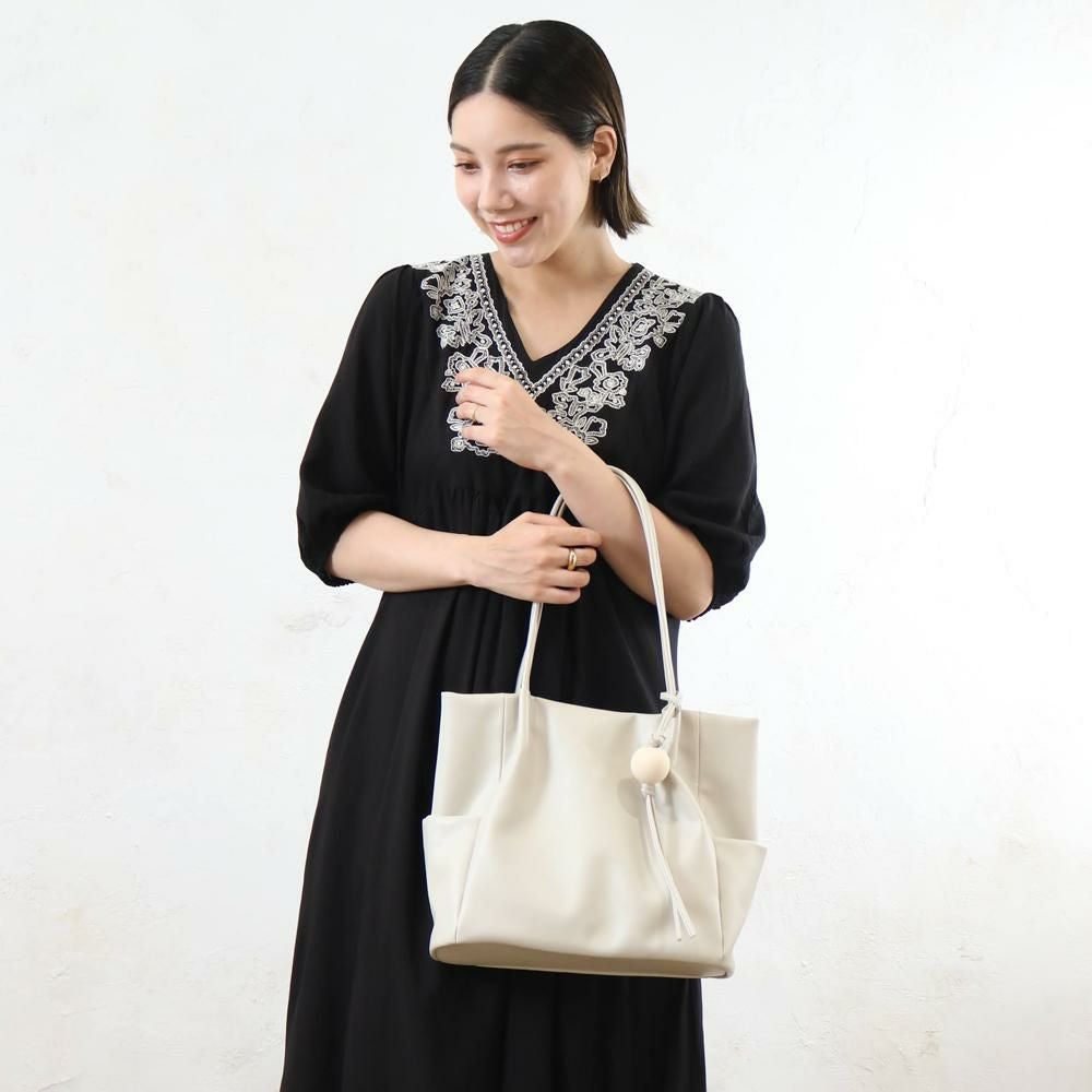 ウッドチャーム付きトート aristella