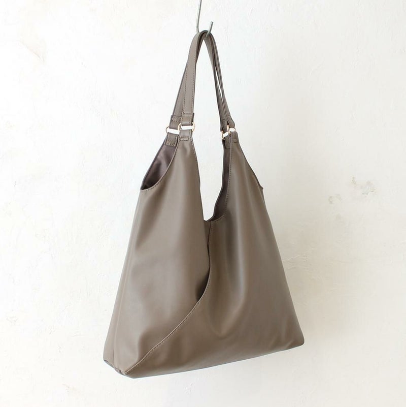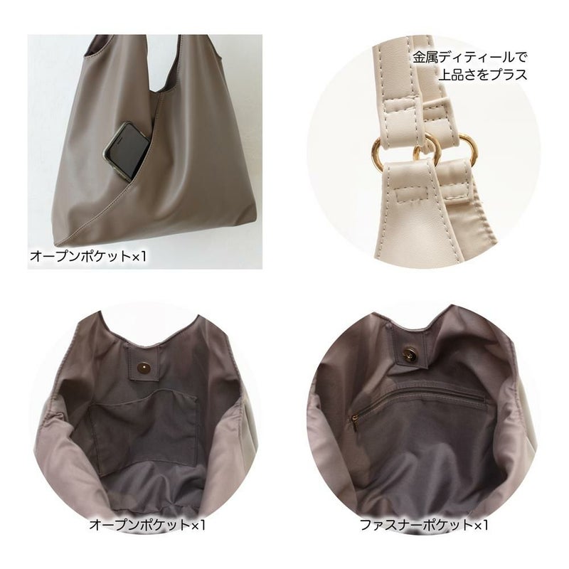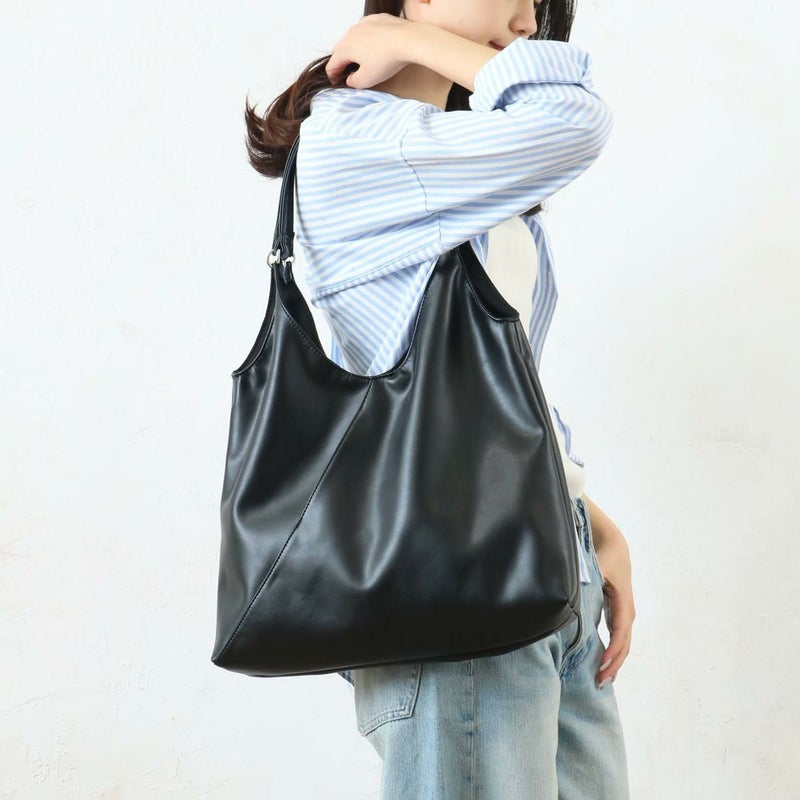 軽くて柔らかい合皮を使用しているので肩掛けもしやすい!切り替えデザインにはスマホなどを入れるのに便利なポケット付きです。A4サイズが収納可能で通学・通勤用バッグとしても◎