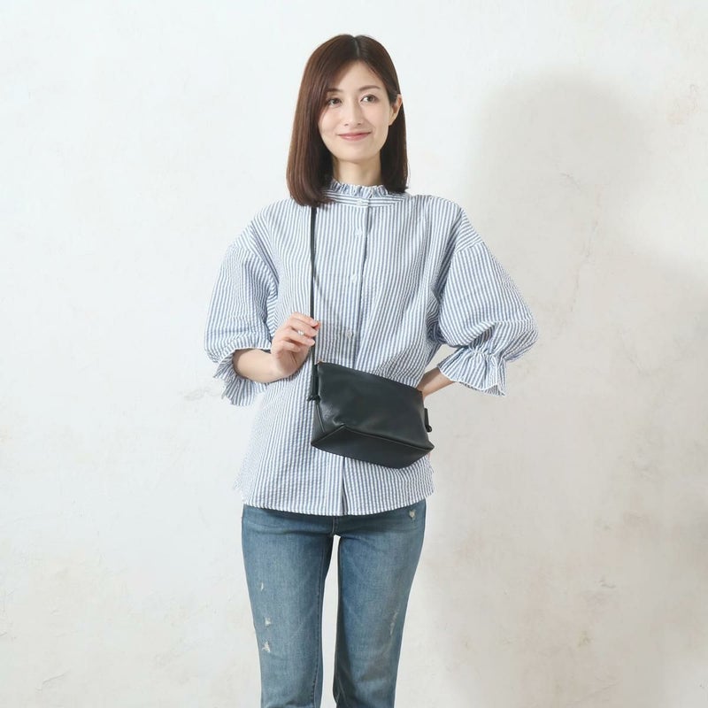 キメの細かいシボのあるシュリンクレザーを贅沢に使用したショルダーバッグは、どんなシーンでも使えるシンプルで上品なデザイン。スムース革に比べ傷や汚れが目立ちにくく、永くお使いいただけます。ショルダーベルトはお好みの長さに調節が出来るので肩掛けはもちろん、用途に合わせて斜め掛けも可能。