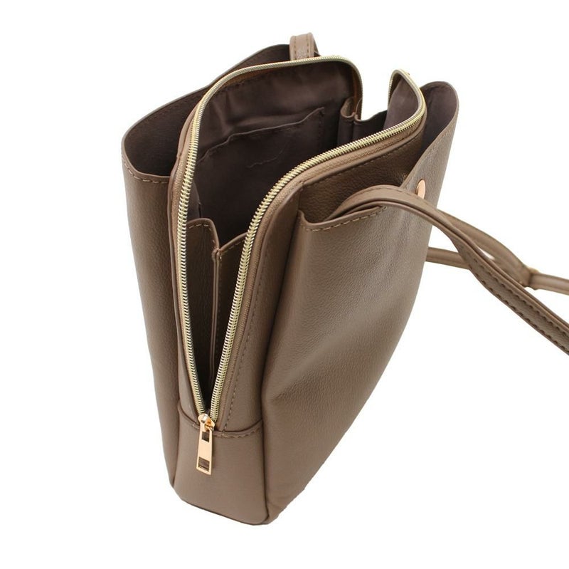 3層仕立てのミディサイズのショルダーバッグ。パスポート等がすっぽり入るサイズ感なので旅行やおでかけにもぴったり◎金具等の使用を削減し、軽量なのも嬉しいポイントです!