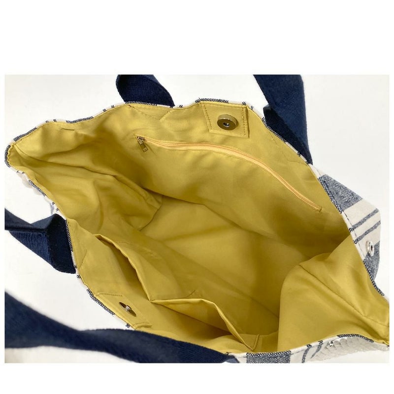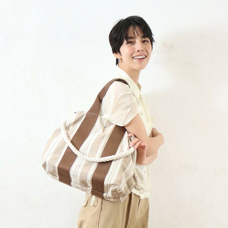 肩に優しい柔らかめのロープショルダー付きA4対応サイズの2wayトートバッグ。少しクタッとした仕上がりで、大きくても身体に馴染んで持ちやすい仕様。夏らしい雰囲気を楽しめる、存在感があるサマーバッグです!