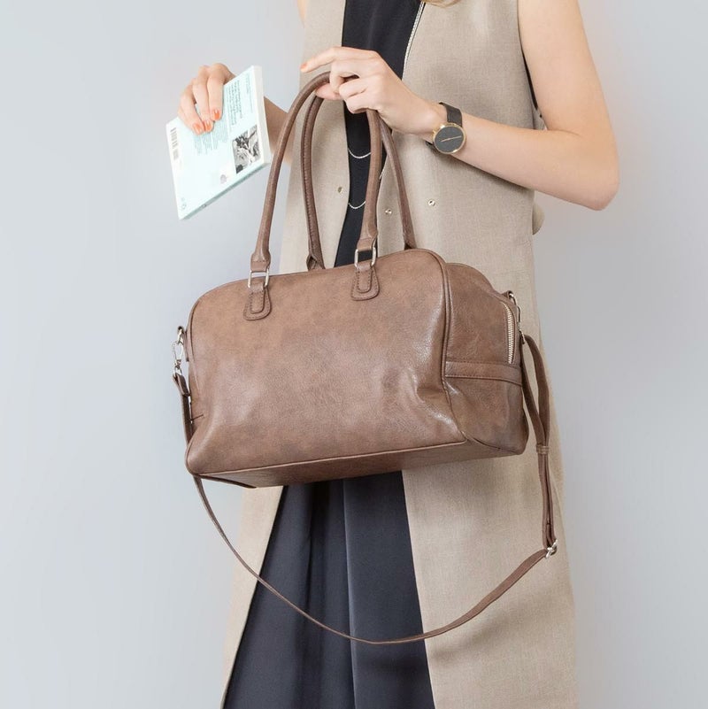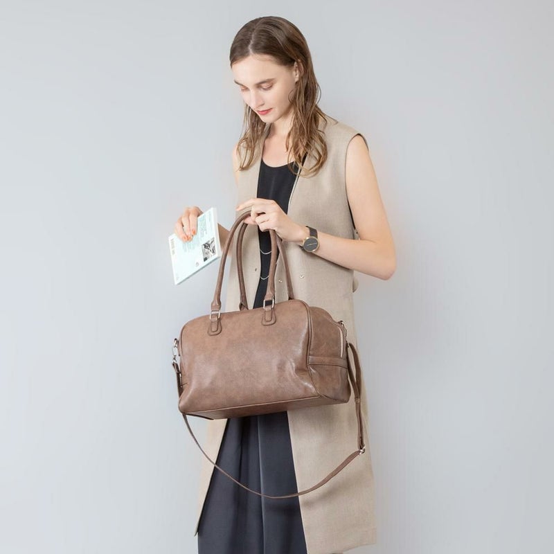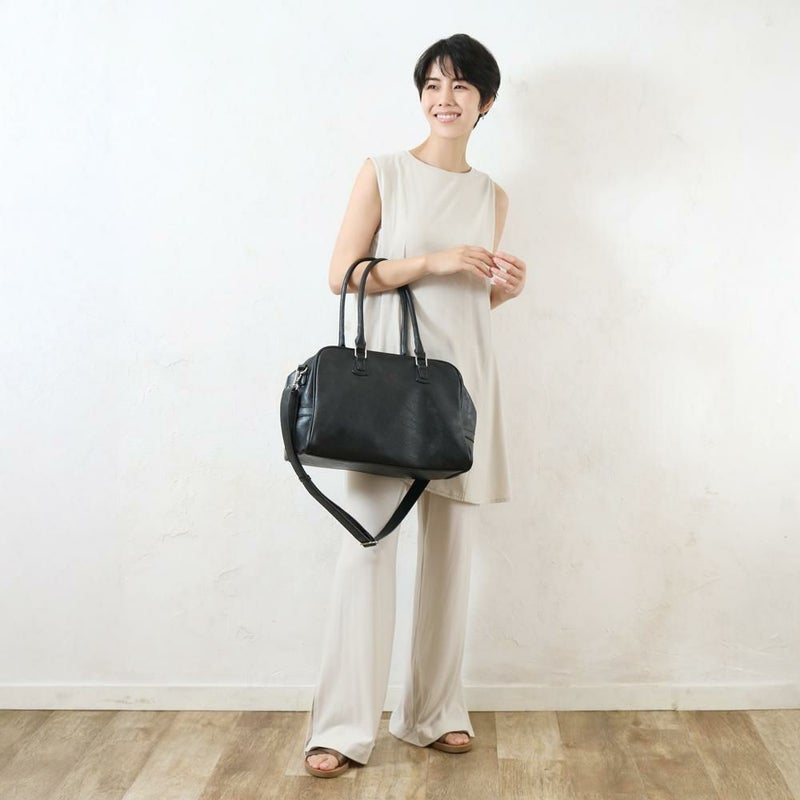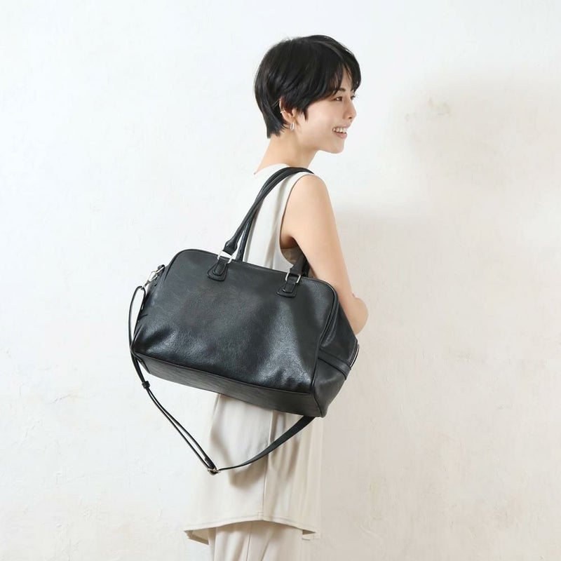 シンプルで飽きのこない、スクエア型のボストンバッグです。どんなコーディネートにも合わせやすく、デイリーユースにも大活躍!ショルダーストラップ付きで、手持ちと肩掛けの2WAYで使えます。A4サイズのファイルが入り、春夏であれば一泊程度の旅行の荷物がしっかり入る収納力も魅力です。