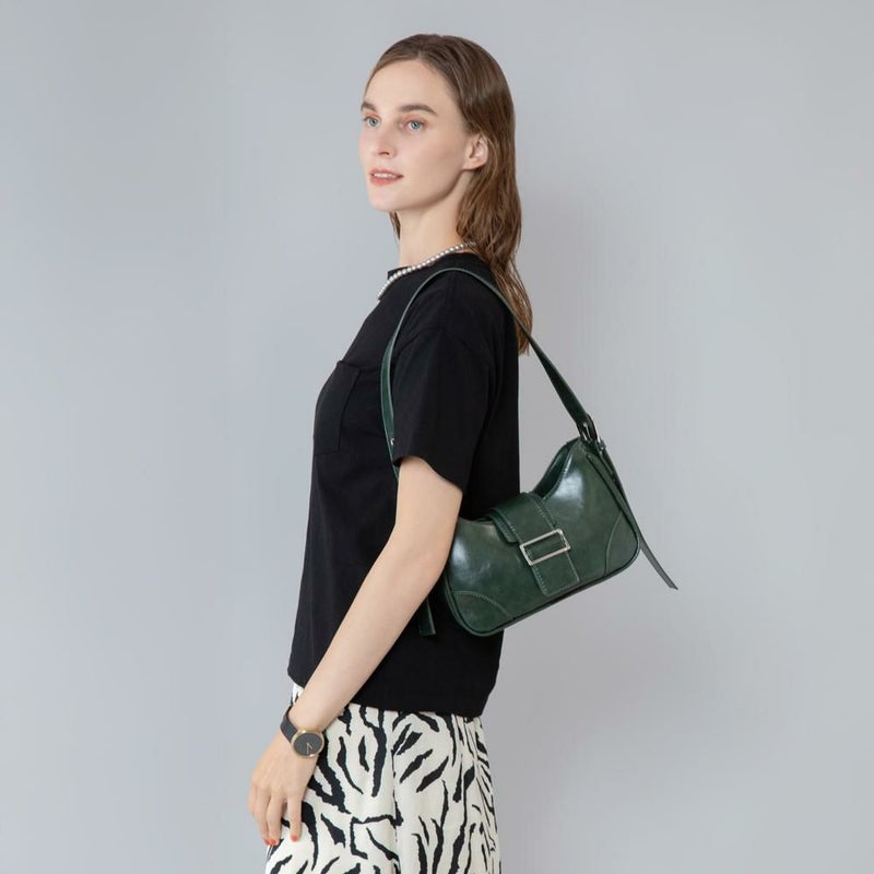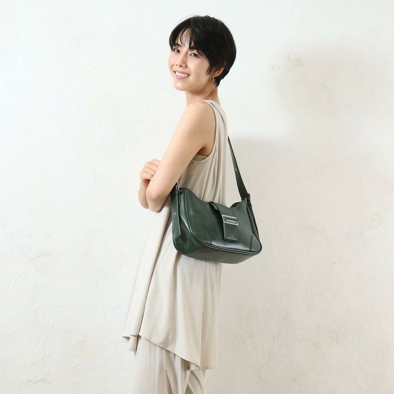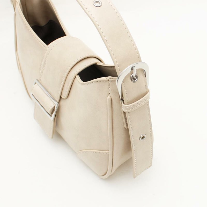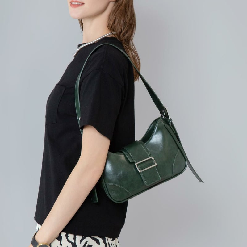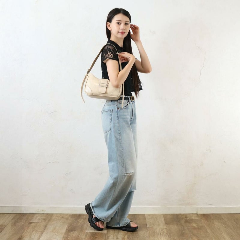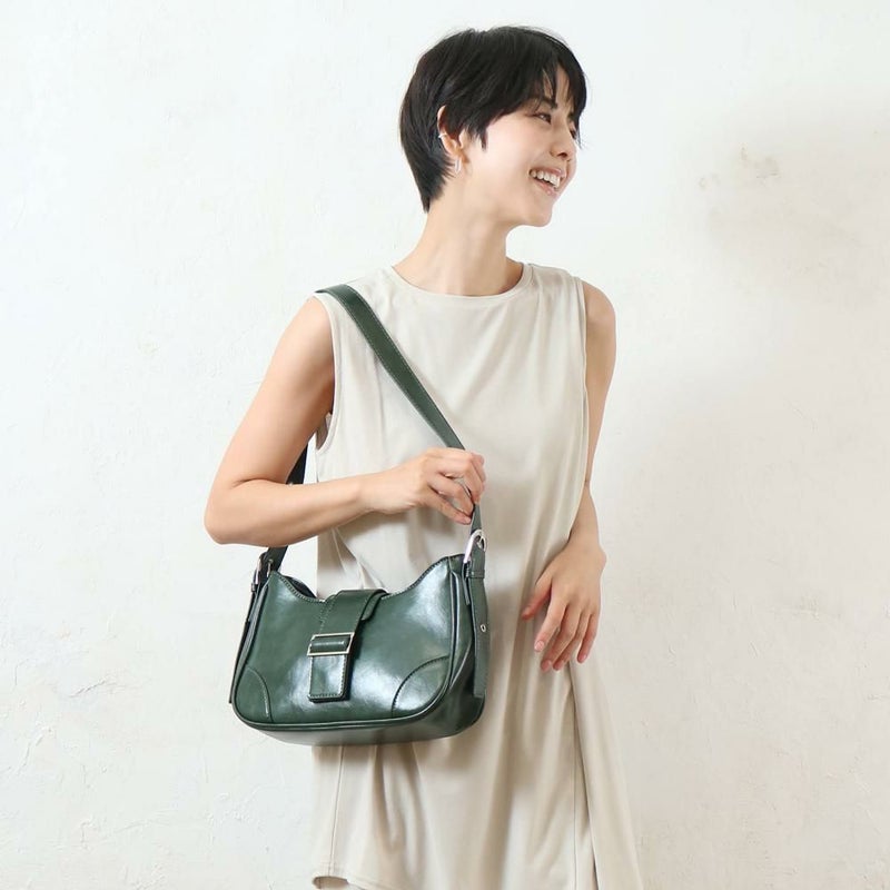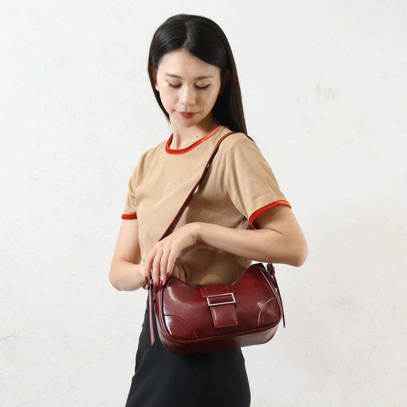 クールなバックルデザインとヴィンテージ感のある素材が、コーディネートを格上げするバッグです。シンプルながらも存在感があり、いつものスタイルにトレンド感をプラス◎長さ調節可能なショルダーは肩掛けと手持ちで使え、コンパクトな見た目以上の収納力も魅力です!