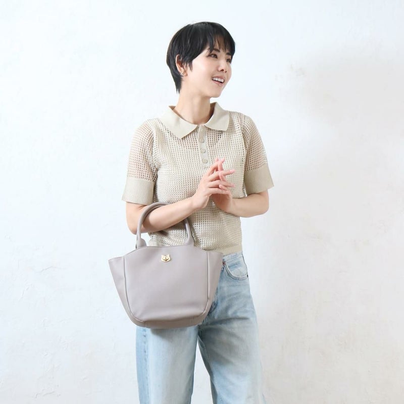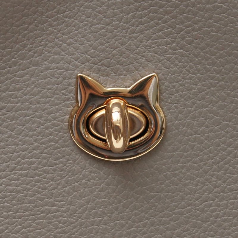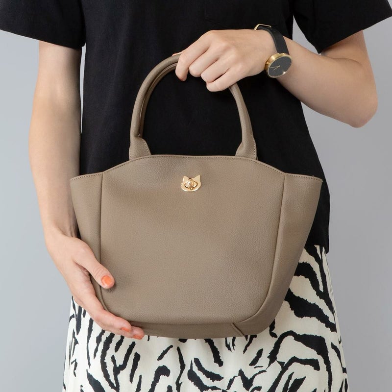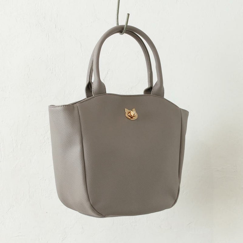 シンプルながらも猫のモチーフがさりげなく可愛い、ツイストロック付きのトートバッグです。ツイストロックが猫の顔になっており、遊び心のあるデザインです。合皮を使用しており、高級感を演出します。マチがしっかりあり、荷物がたっぷり入るサイズ感です。