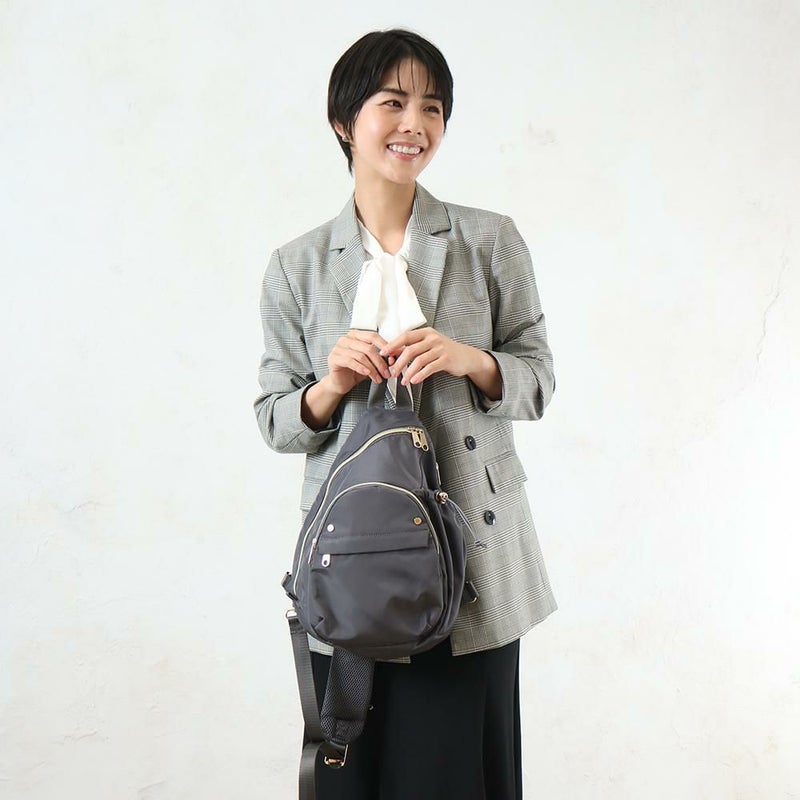 カジュアルなものはよく見かけるけどキレイめなボディバッグは初めて見ました。