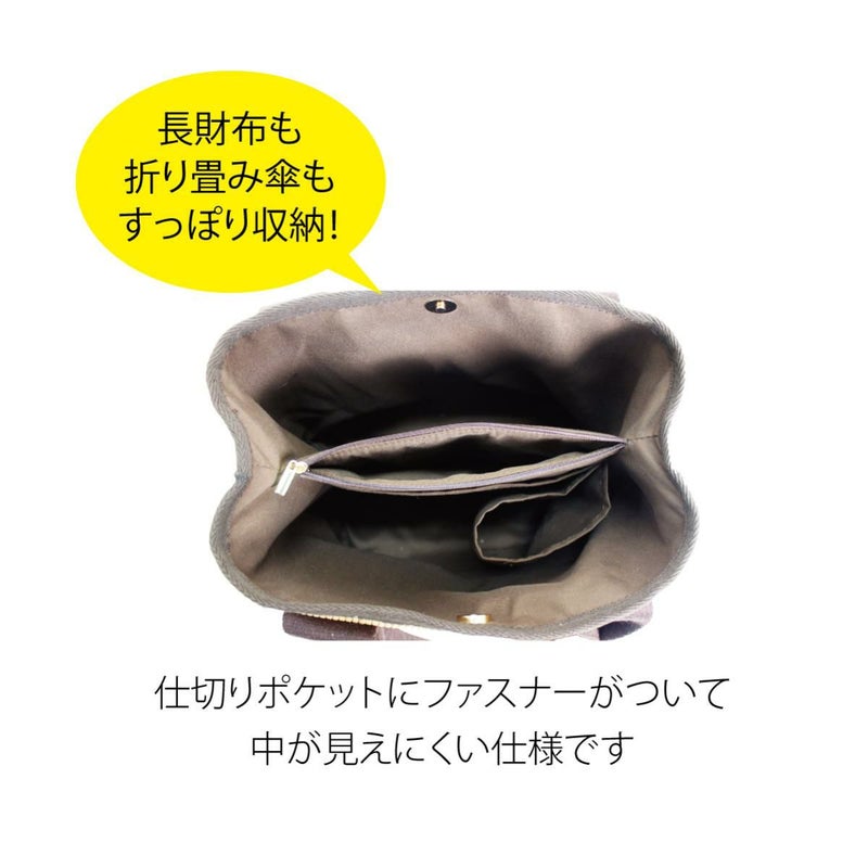 内側が仕切られているので、荷物が整理しやすいトートバッグ。中央はファスナーポケットで仕切られているほか、小物を仕分けしやすいオープンポケットも沢山付いています。 #売れ筋10 #250825