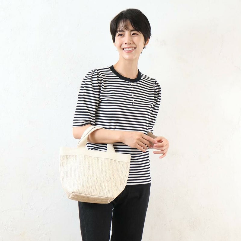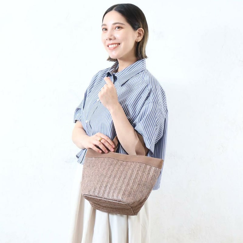 光沢感のあるポリプロピレン素材は高見え効果もあり◎コンパクトな見た目ながら、底マチが広く、お出かけに必要なものがしっかりと収まります。お財布やスマートフォン、メイクポーチなどを入れても余裕があり、デイリーユースにぴったりのサイズ感です。シンプルな着こなしのアクセントとしても活躍します。