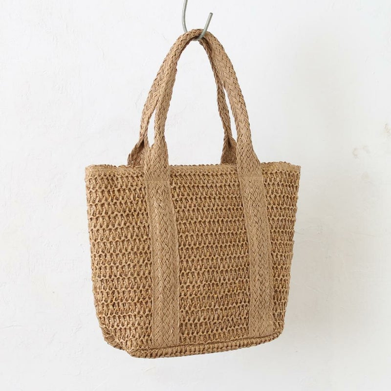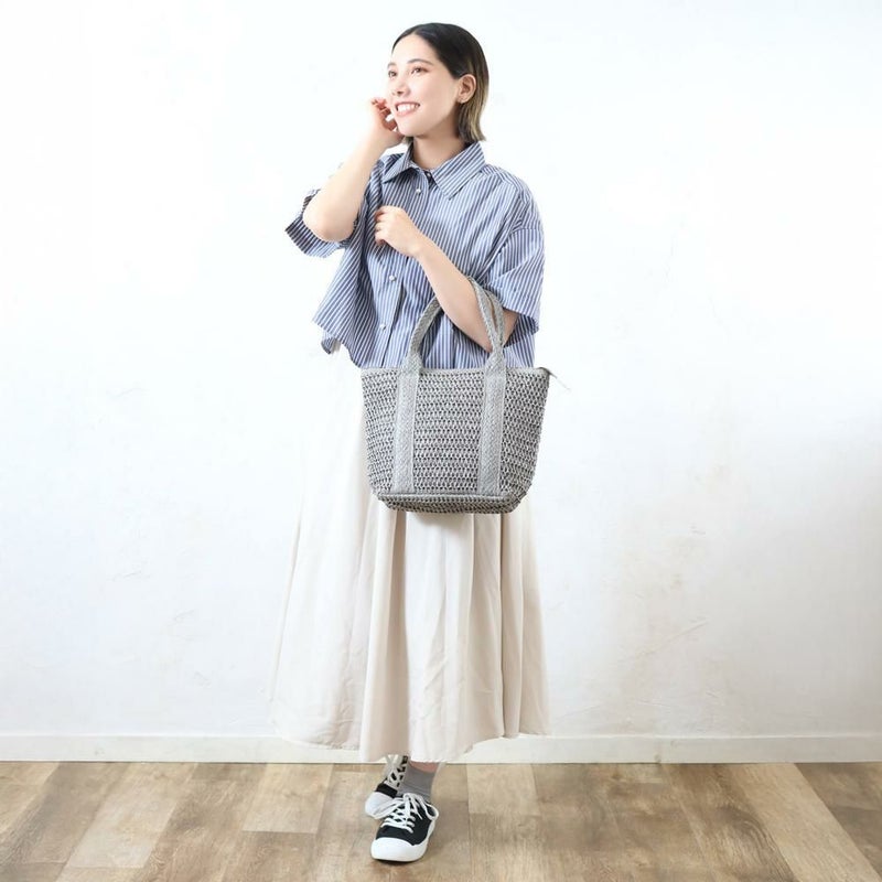 英語の「スパークルsparkle」は英語の輝き、きらめきの意味。ナチュラルな素材にラメ糸を織り交ぜた、夏にぴったりのトートバッグです!光に当たるとさりげなくきらめき、上品で華やかな印象を与えます。かぎ編みのような優しい風合いと、きらめくラメが絶妙なバランス。軽量で持ち運びやすく、普段使いからリゾートスタイルまで幅広く活躍します♪