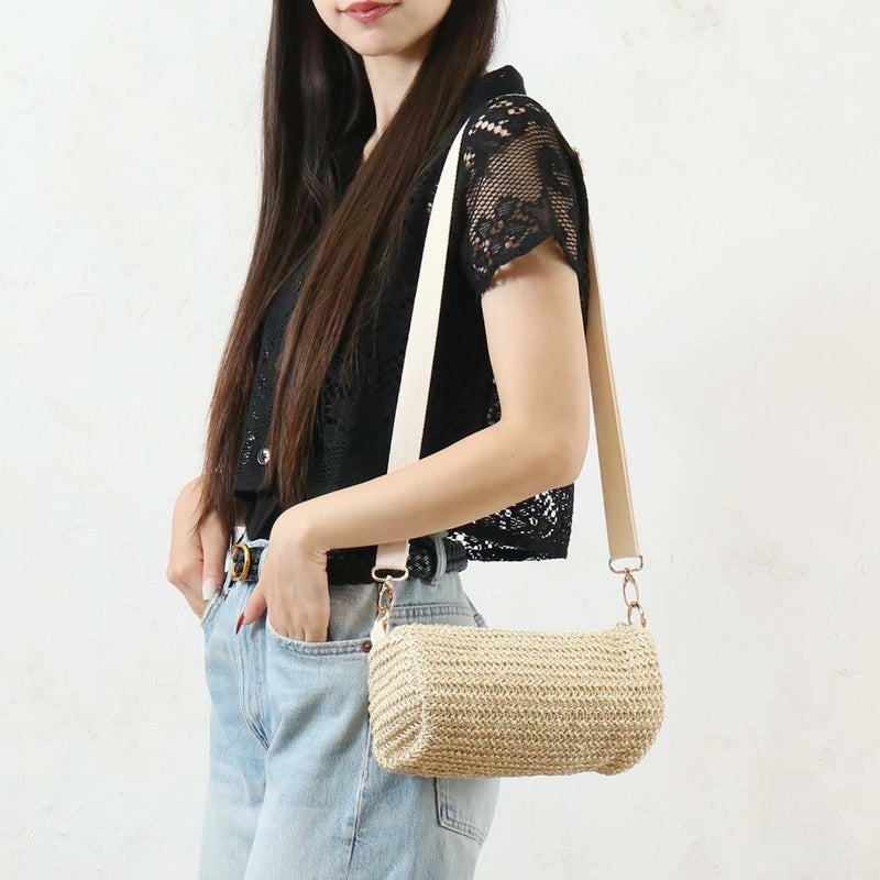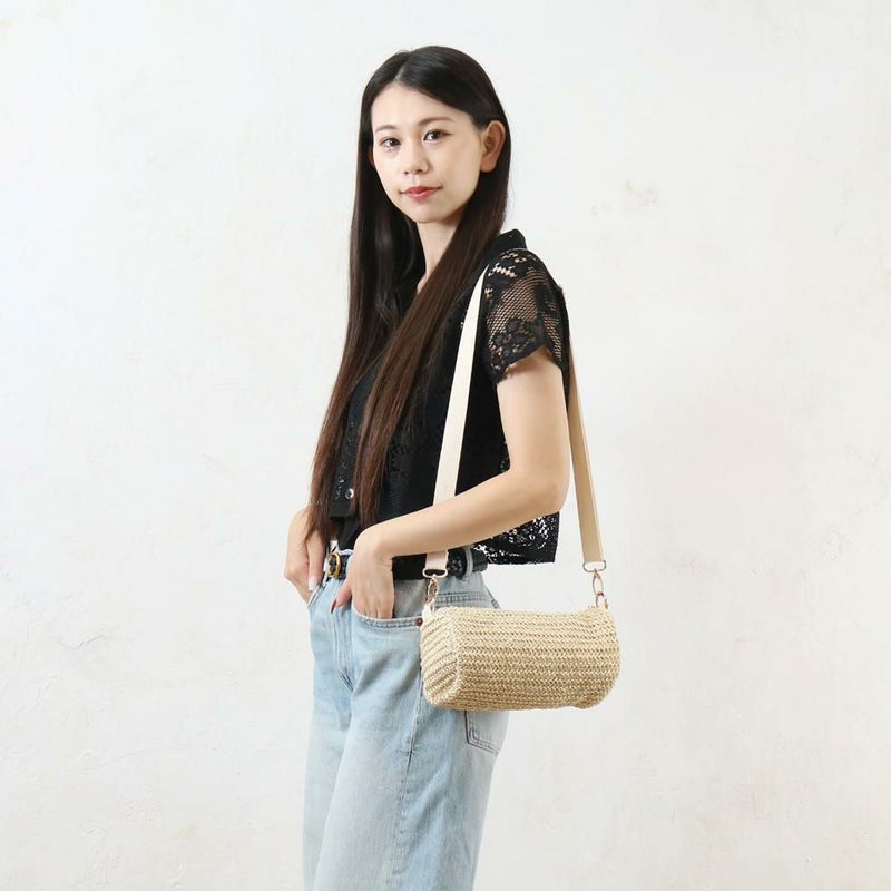 コロンとした円筒形のフォルムが特徴のドラムショルダーバッグです。ペーパー素材と、異素材のショルダーストラップの組み合わせが、シンプルながらも個性を引き立てます。スマートフォンやミニ財布、リップなど、必要最低限の荷物をコンパクトにまとめて持ち運べるサイズ感です。ショルダーストラップは長さの調節が可能で、肩掛けや斜め掛けなど、スタイルに合わせて楽しめます。
