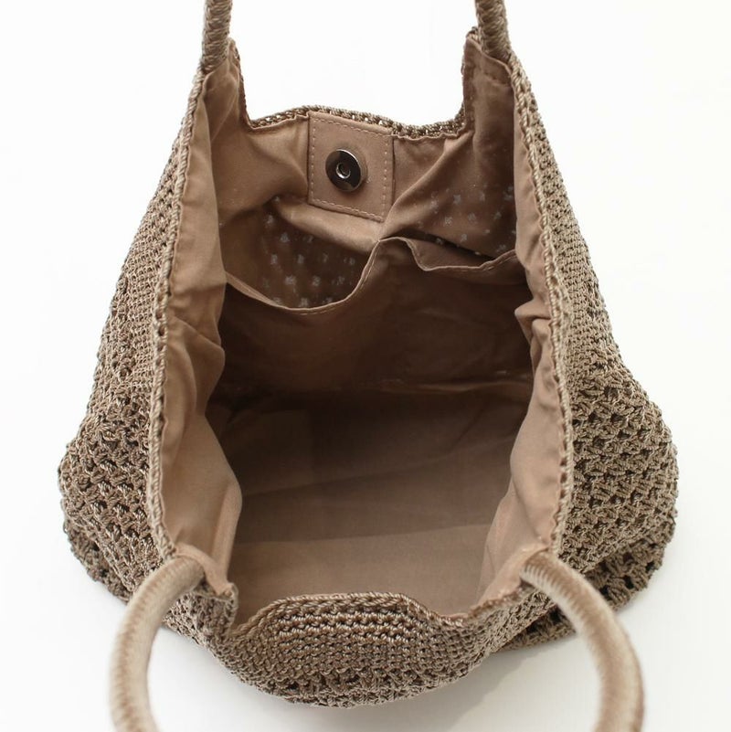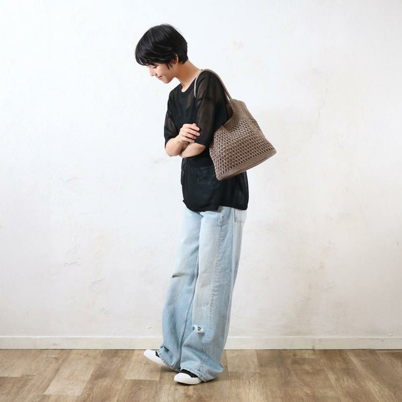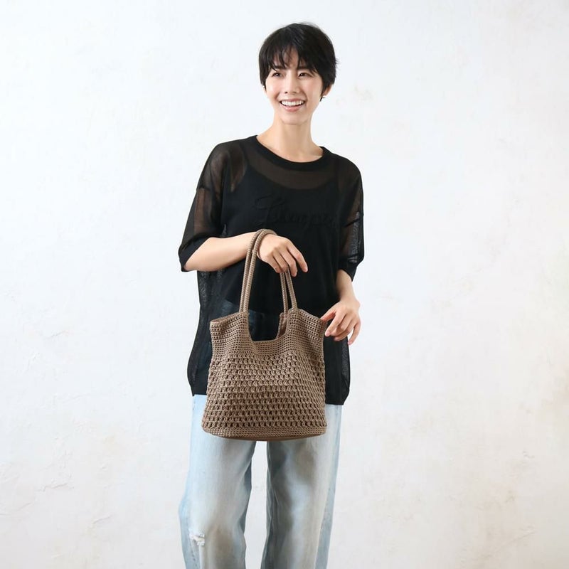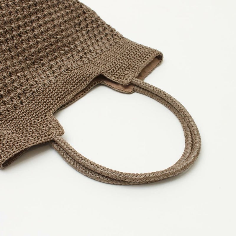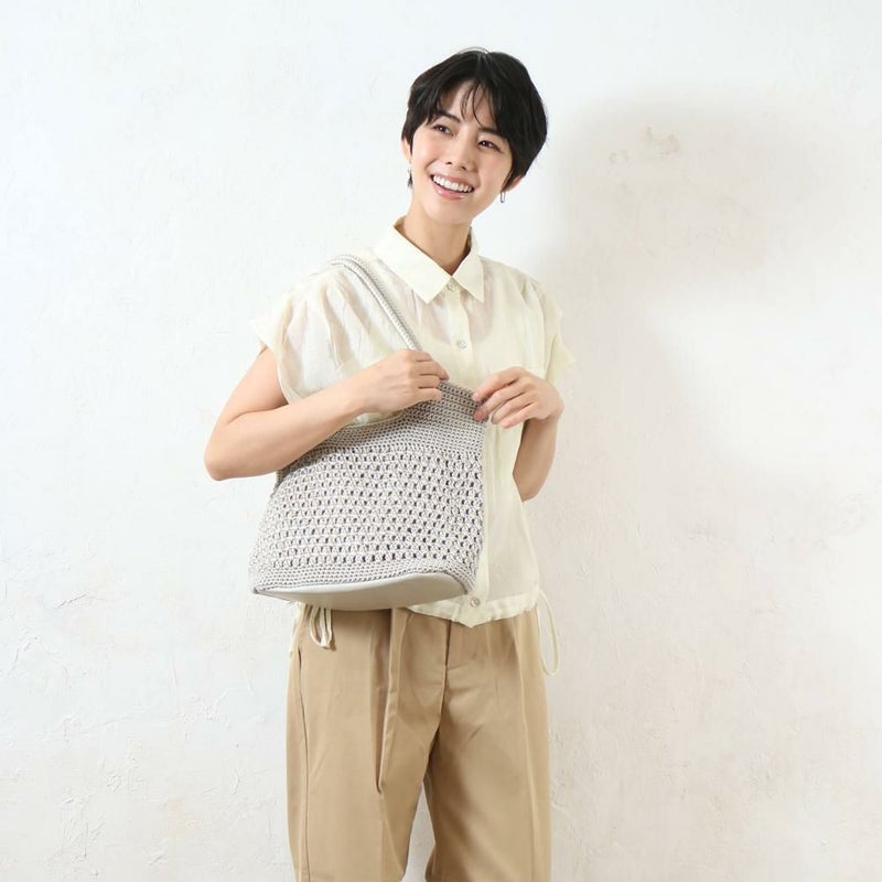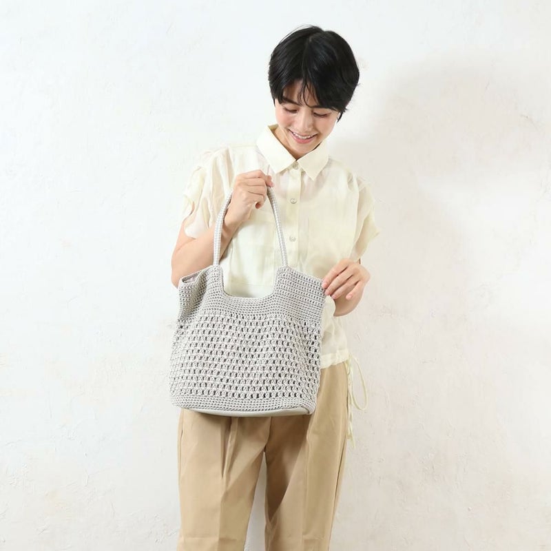 人気のコード編みシリーズに新型が登場!清涼感のあるコード編みのスクエアトートバッグです。長財布やスマートフォンなど、お出かけに必要なものがしっかりと収まります。デニムやTシャツなどのカジュアルスタイルはもちろん、きれいめなスタイルにも合わせやすいです。いつものコーディネートにプラスするだけで、ぐっとおしゃれ度がアップするアイテムです。