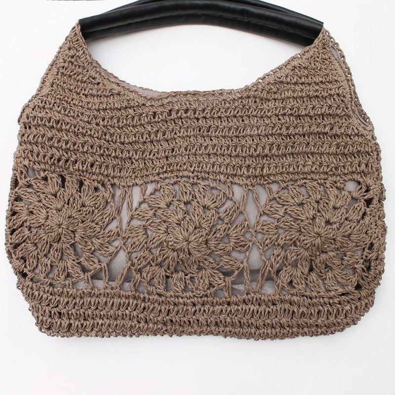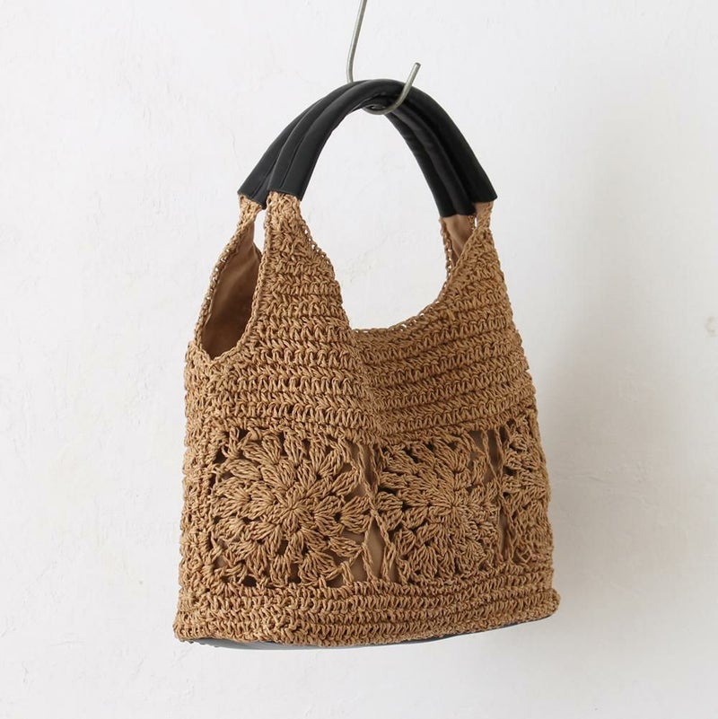 涼感あふれる雑材に、可憐なフラワーパネルが映えるトートバッグです。持つだけで、夏のコーディネートが華やかになります。繊細な編み込みで表現されたフラワーモチーフが、バッグに上品な可愛らしさをプラスします。丸みを帯びたやわらかなフォルムが、持つだけで女性らしい雰囲気を演出♪広としたマチと深さで、お出かけに必要なものがしっかり入る、頼もしいサイズ感です。