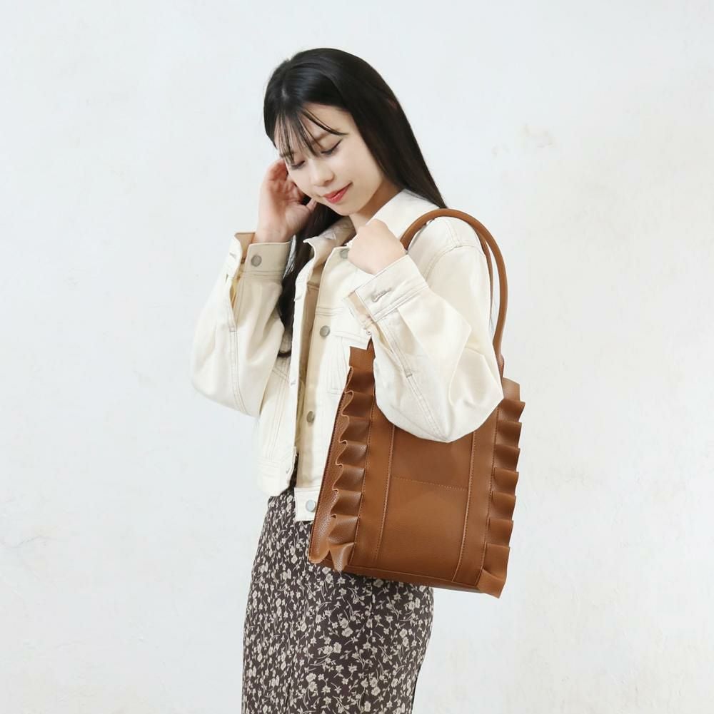 合皮フリルスクエアトート aristella