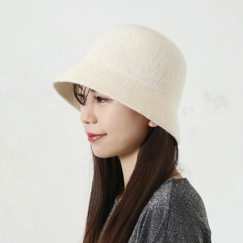 ラメ糸入り素材のバケットハット。さりげないラメ糸で上品に見えるように仕上げました!シンプルでベーシックなハットなので幅広いコーディネートに合わせていただけます。すっきりとしたシルエットで、さまさまなコーデにマッチします◎